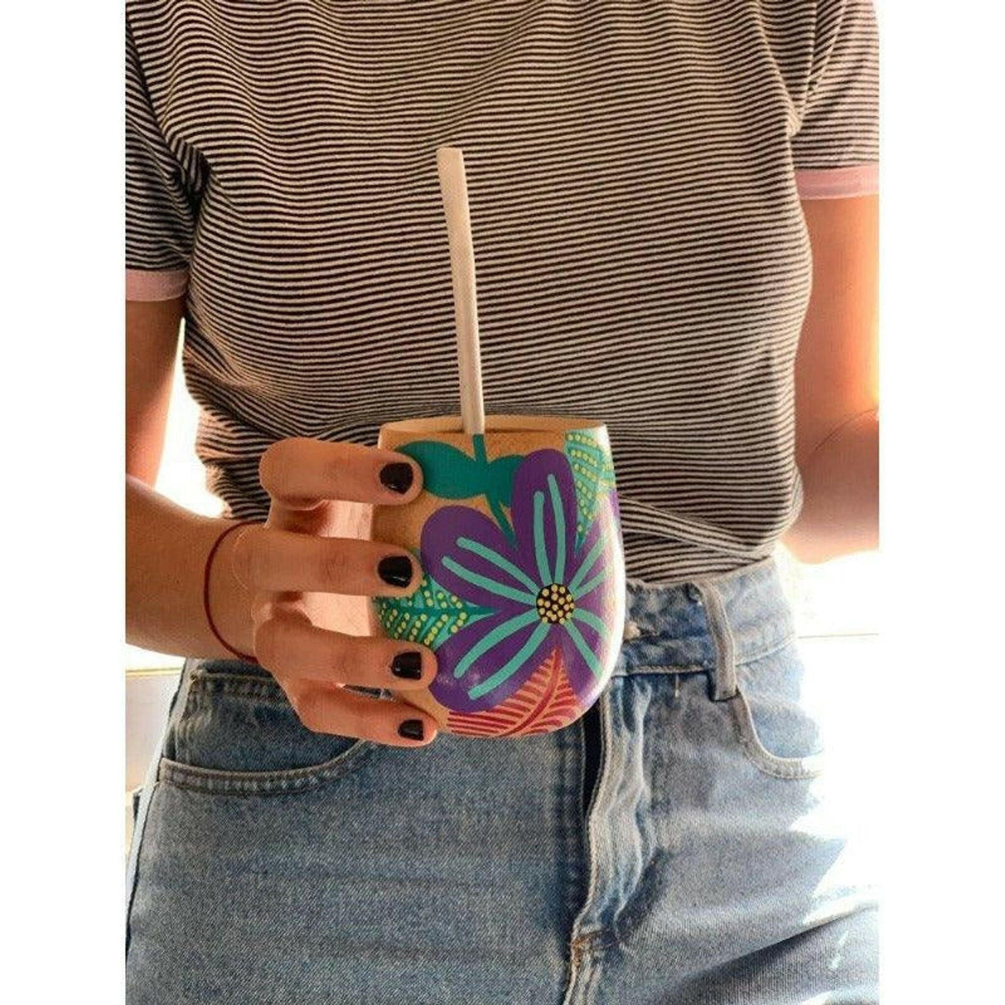 Handmade Solid Wooden Cup - Flor Violeta