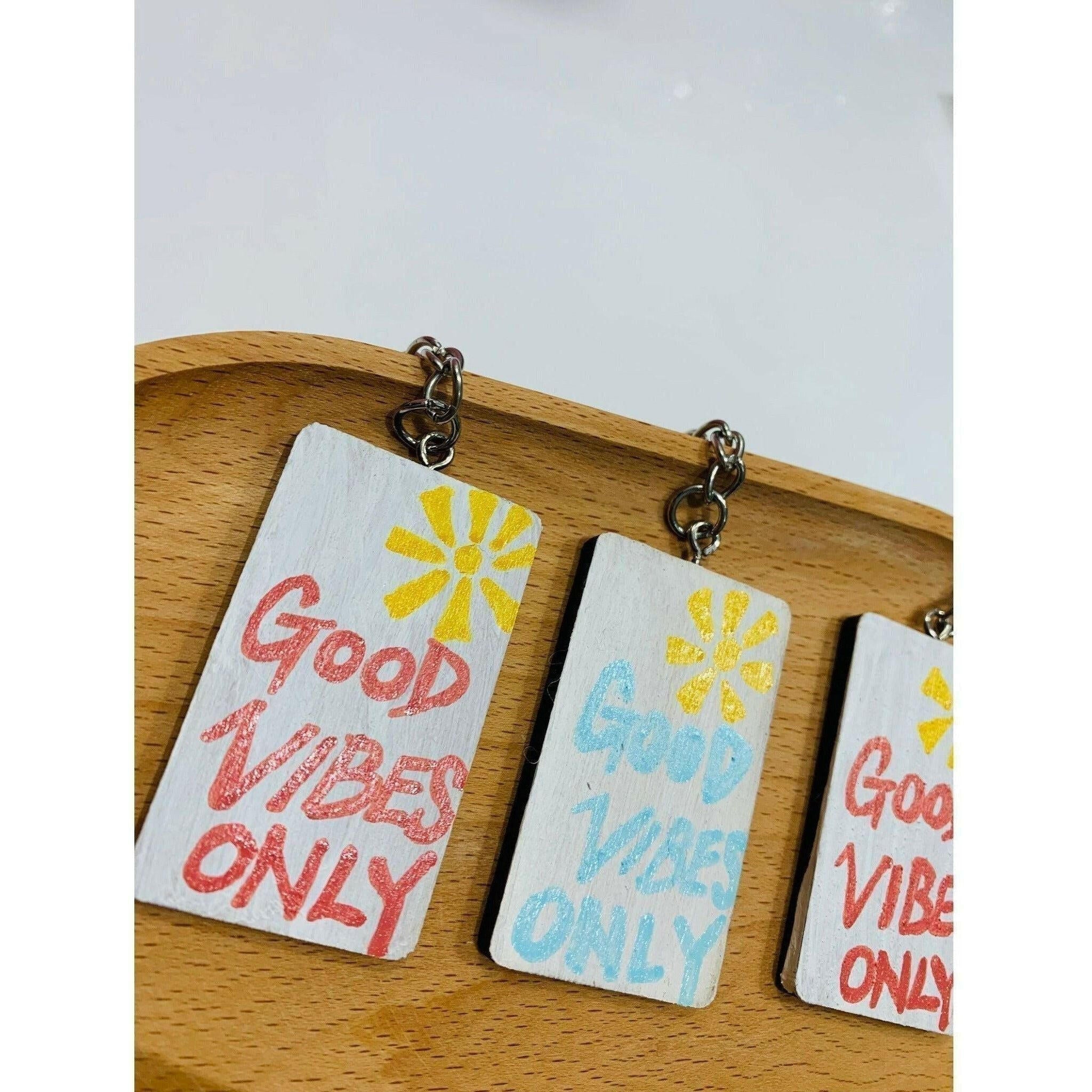 Handmade Solid Wood Keychain - Good Vibes Only