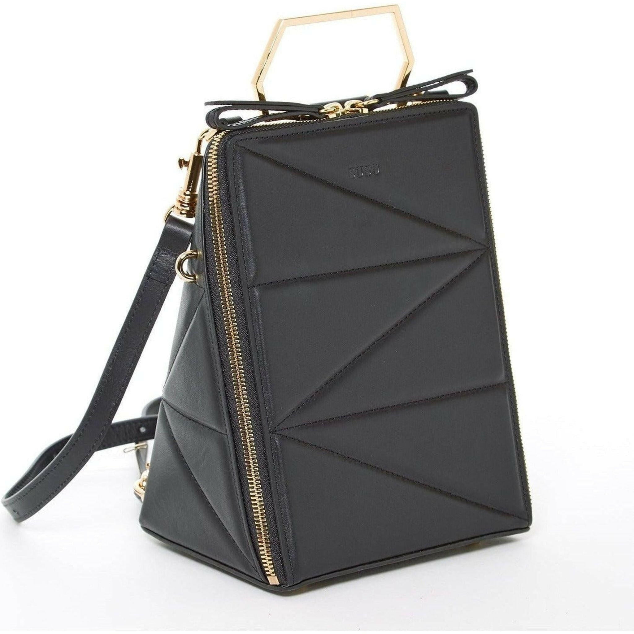 The unique Heidi backpack shaped like a pyramid offers a fashion-forward style that is playful! The spacious fabric-lined interior is organized into 3 compartments making it easy to find your belongings. The flexible leather strap converts this bag into multiple wear use. Slip it on over the shoulder, as a trendy backpack or a stylish crossbody bag. The gold hardware, patterned stitching, and leather zipper pullers that rest atop set you apart as one who appreciates quality details. Engage in the season’s geometrical trend while relishing all the options your Pyramid provides.