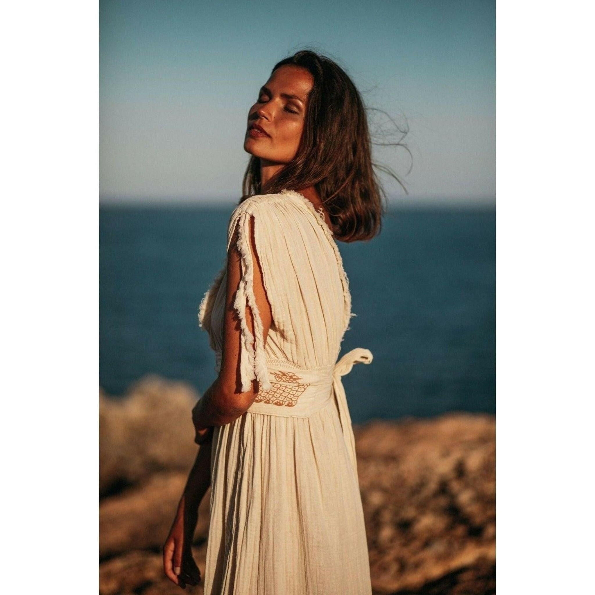 Organic soft Cotton Helen Goddess dress is made entirely by hand.