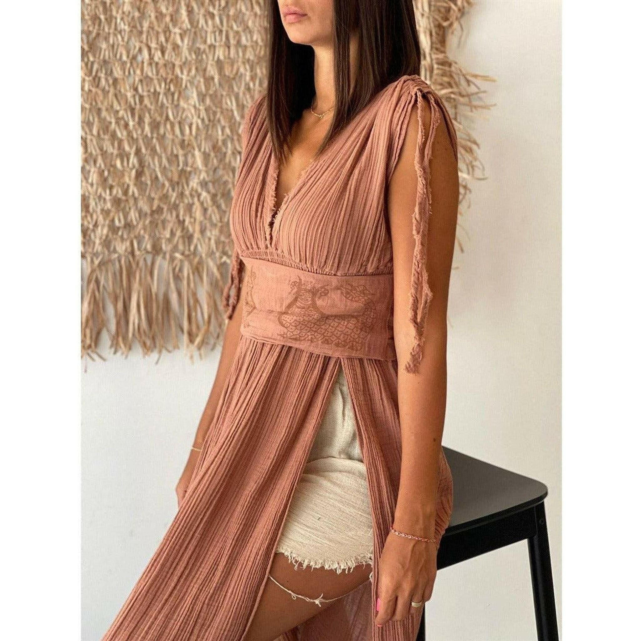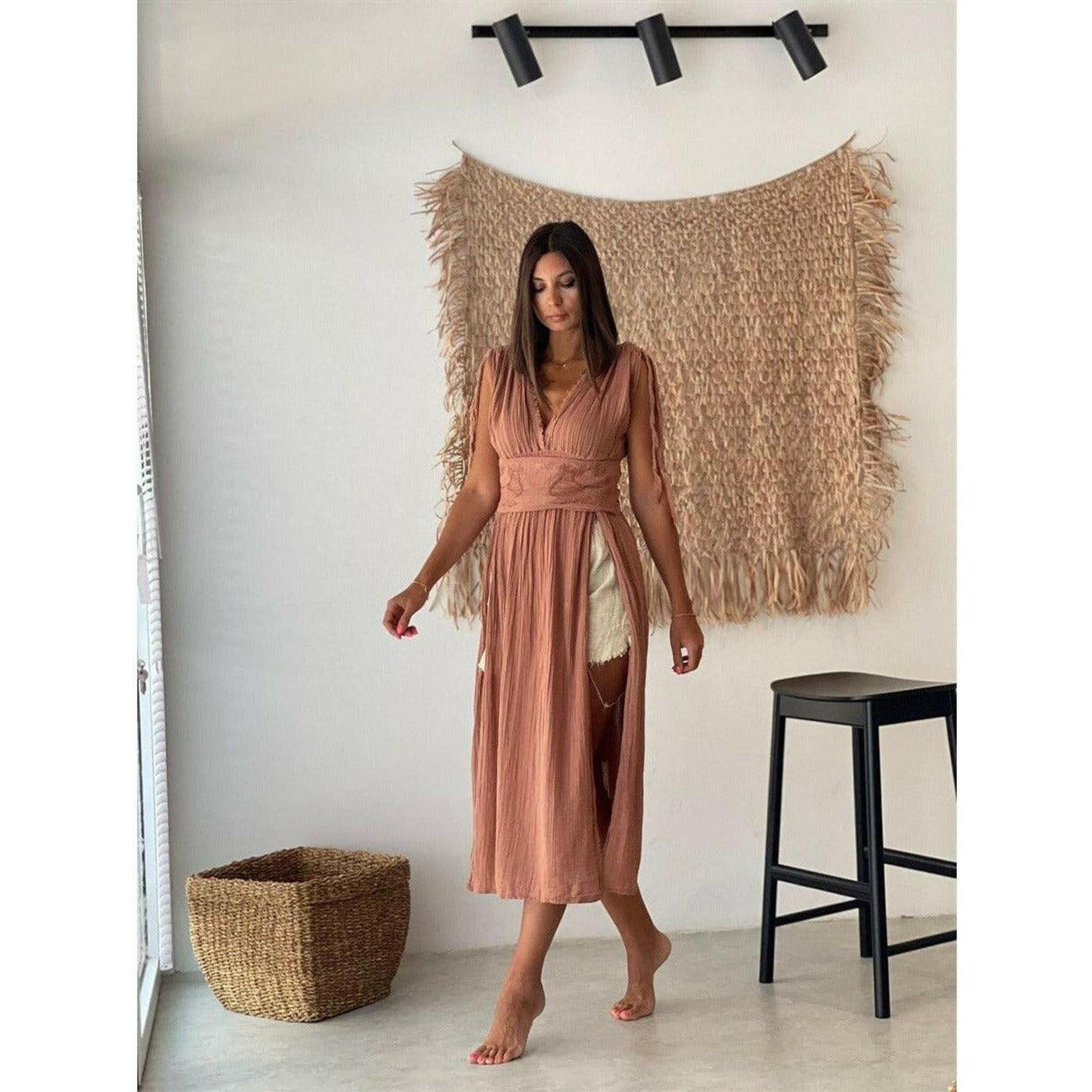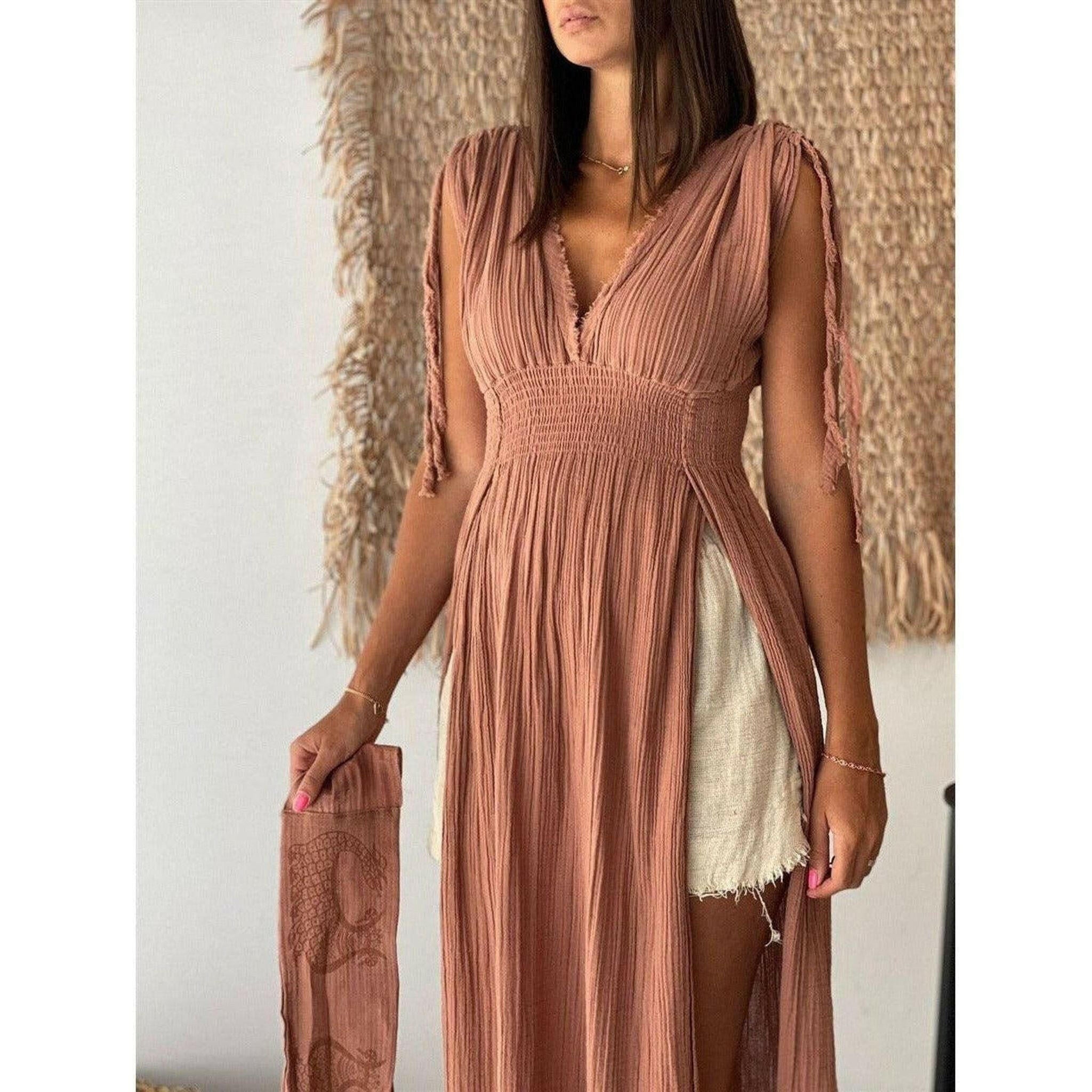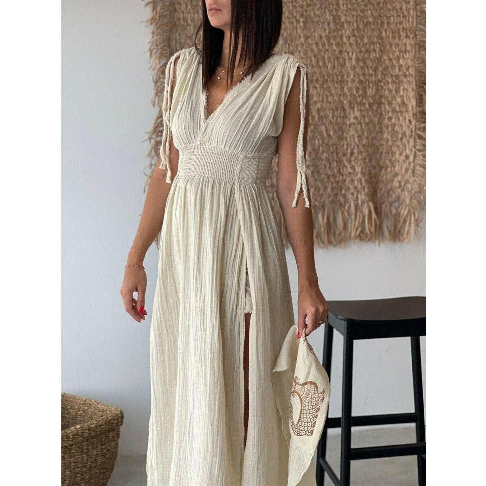Helen Long Boho Organic Cotton Slit Dress