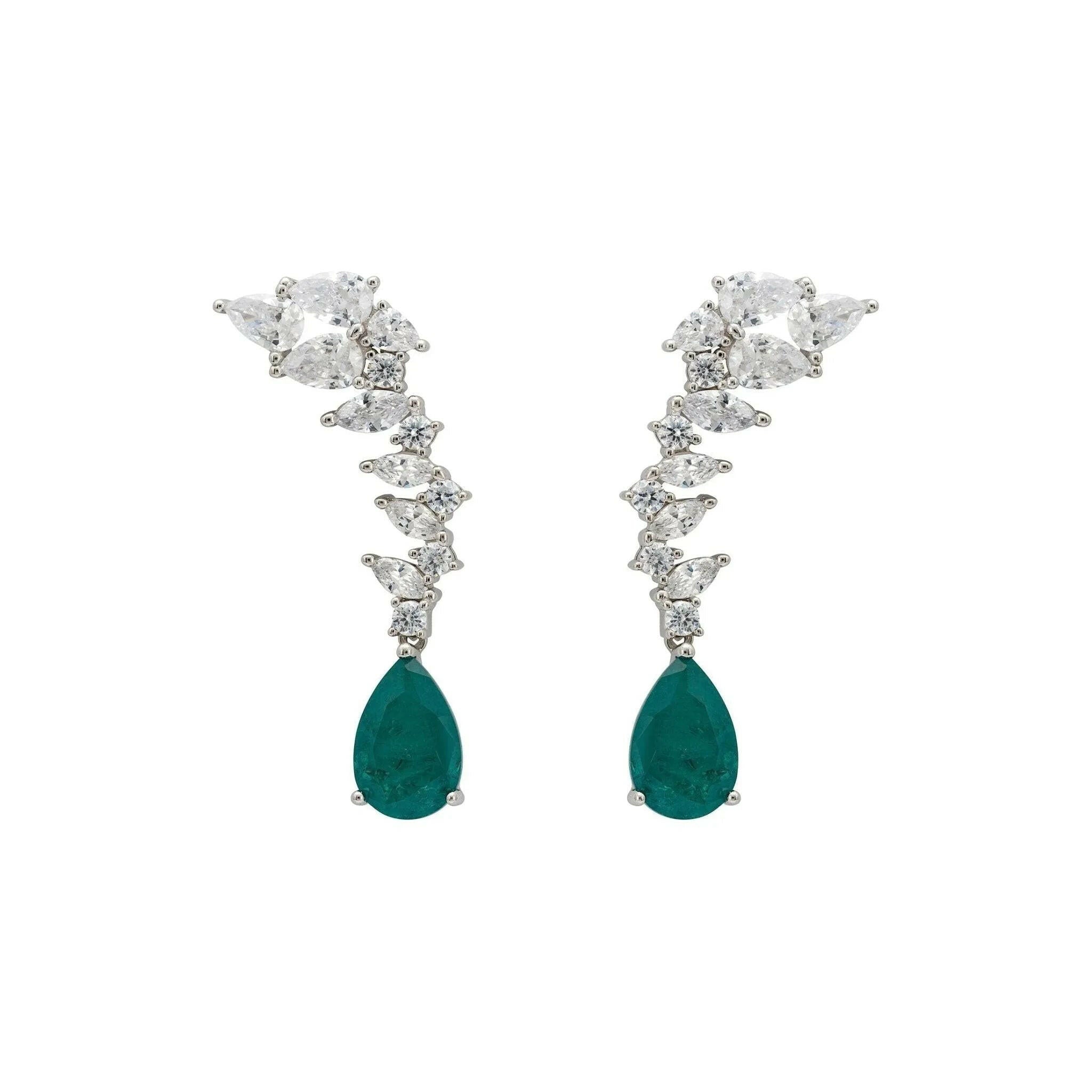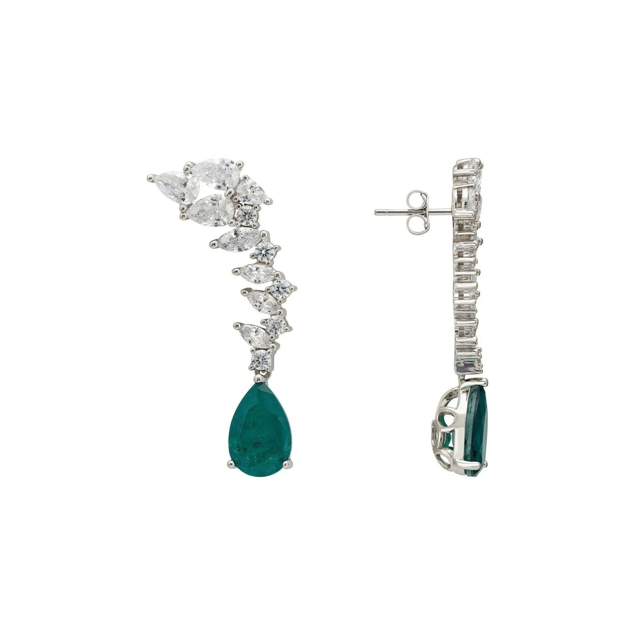 Henriette Teardrop Earrings Emerald Silver