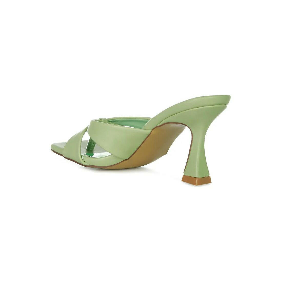 The Highflip Criss Cross slip-on thong sandals have spool heels and a cushioned insole that offers comfort and cuts strain. The sandals are versatile and perfect for casual outings.