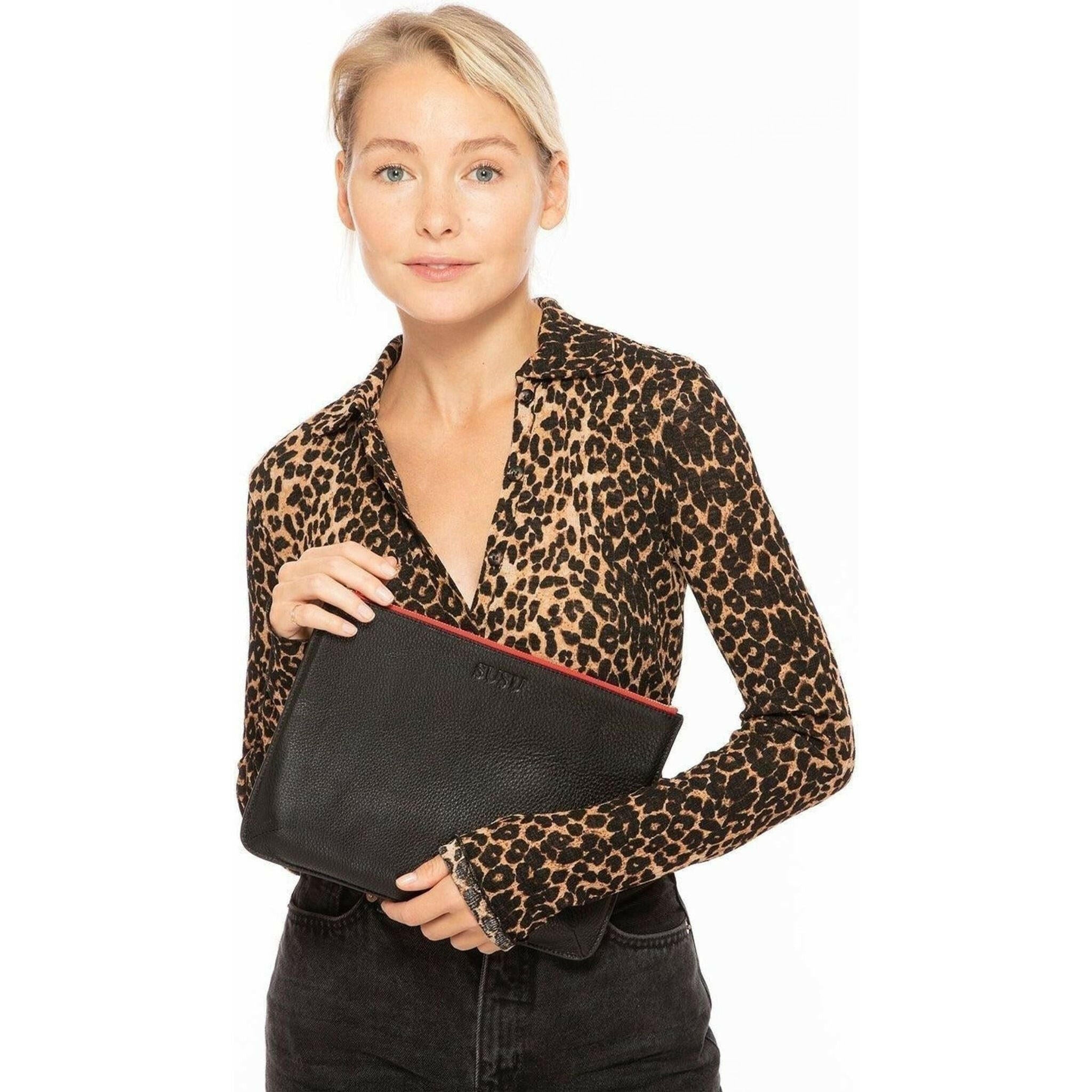 An elegant, yet subdued leather clutch that doubles as an iPad case. Made with high-quality pebbled leather lending a sophisticated yet understated style.