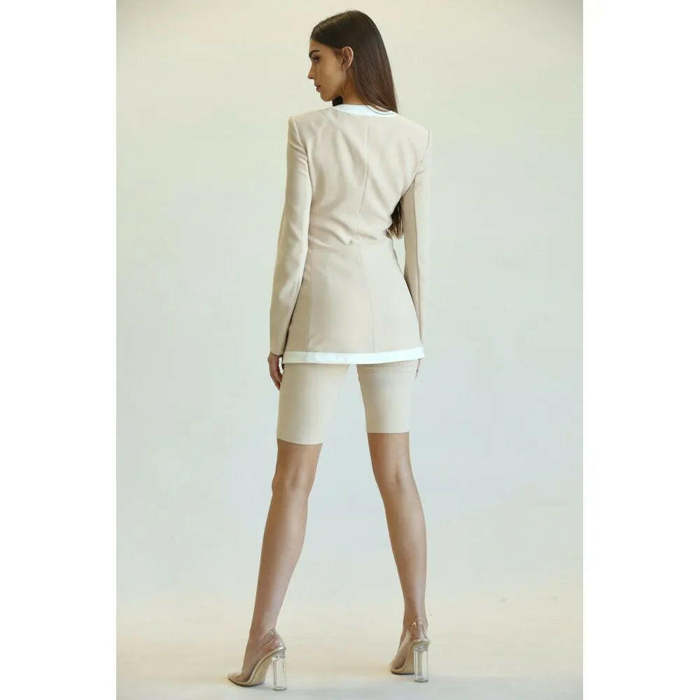 Get ready to rock and roll in the Blazer + Biker Short Set! Made with stretchy, woven fabric, this set features a V-neckline and double-breast button front closure. Keep your essentials close with the welt pocket detail and add some extra edge with the padded shoulders. The white contrast detailing brings the fun and uniqueness of this set to a whole new level. - zipper closure.
