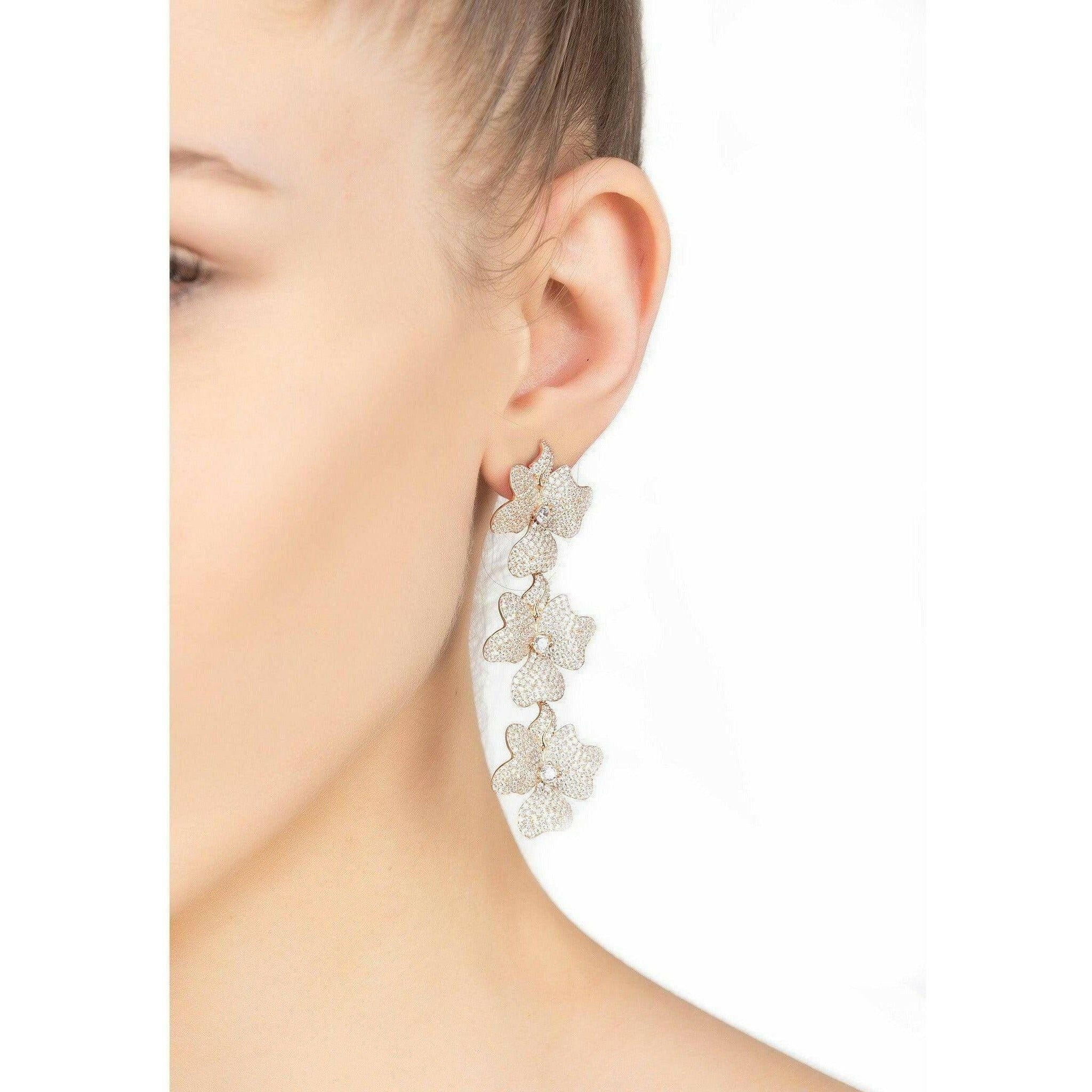 Ideal for those who love statement jewellery with added sparkle. Make these floral inspired earrings your new timeless treasures. Perfect as bridal or wedding jewellery. These earrings will take you to every evening and black tie event.