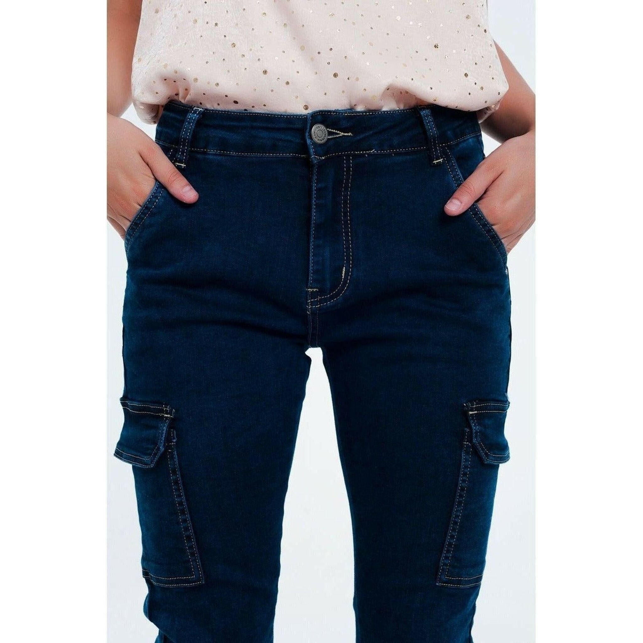 These navy-hued jeans feature stylish and fashionable yet casual appearance along with functional cargo pockets.