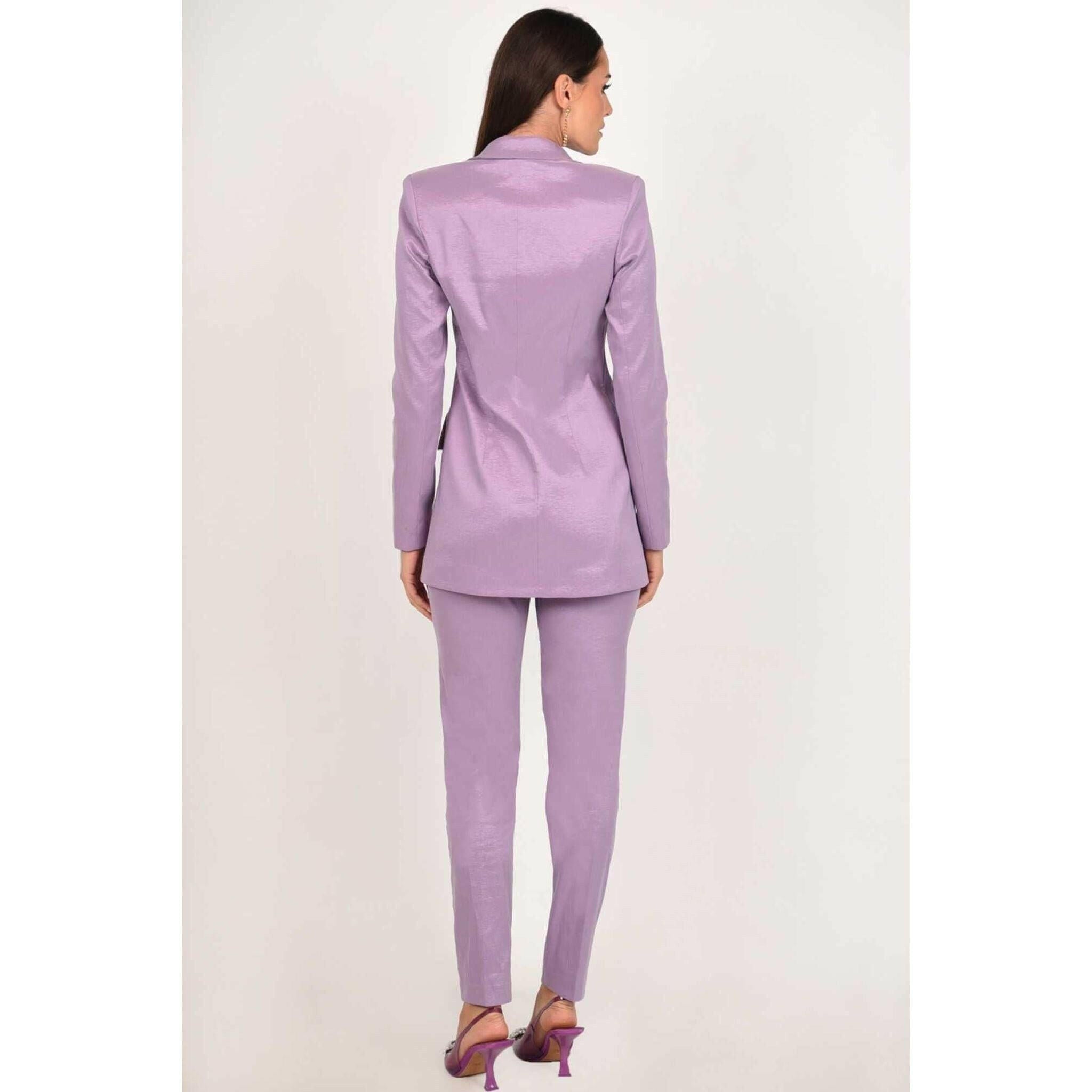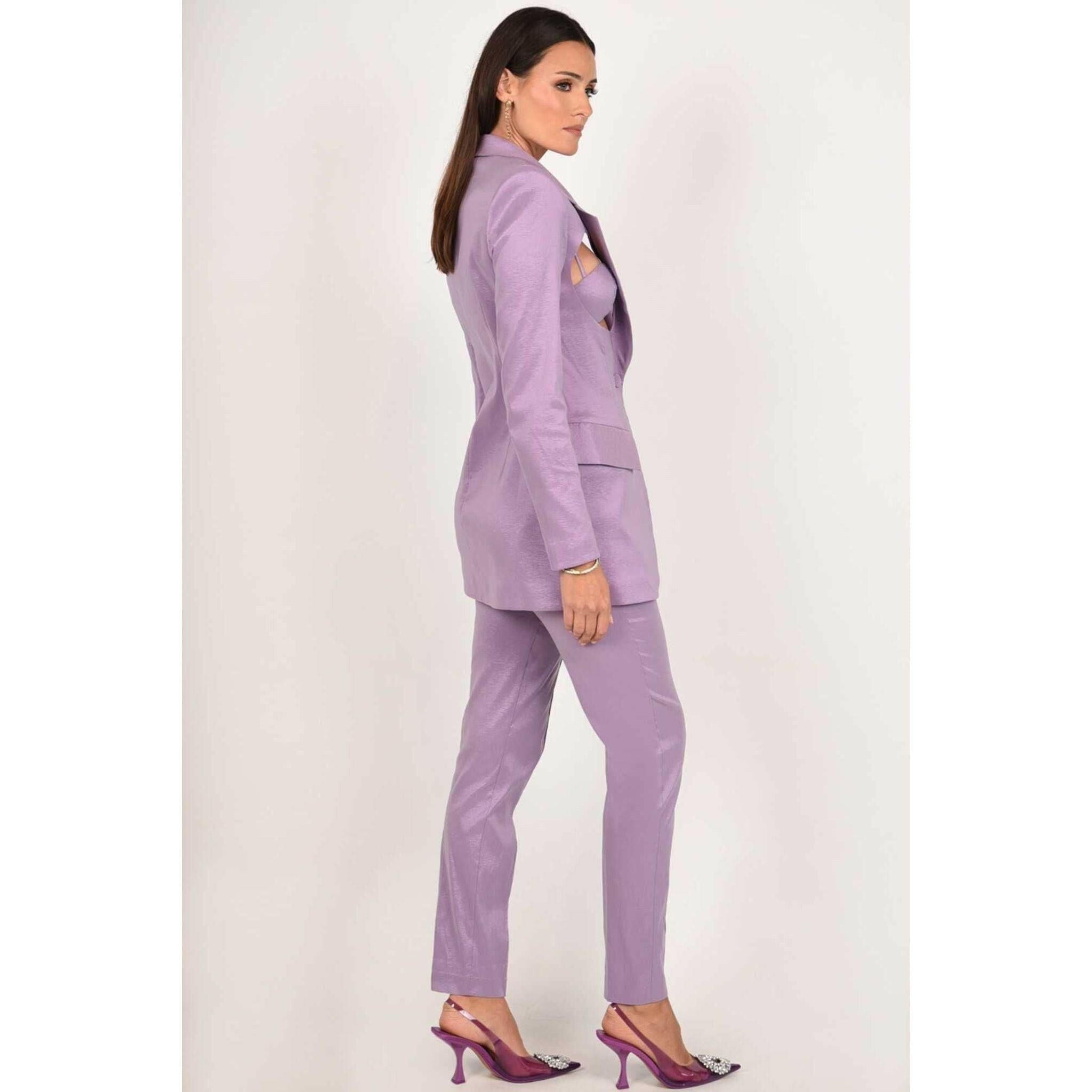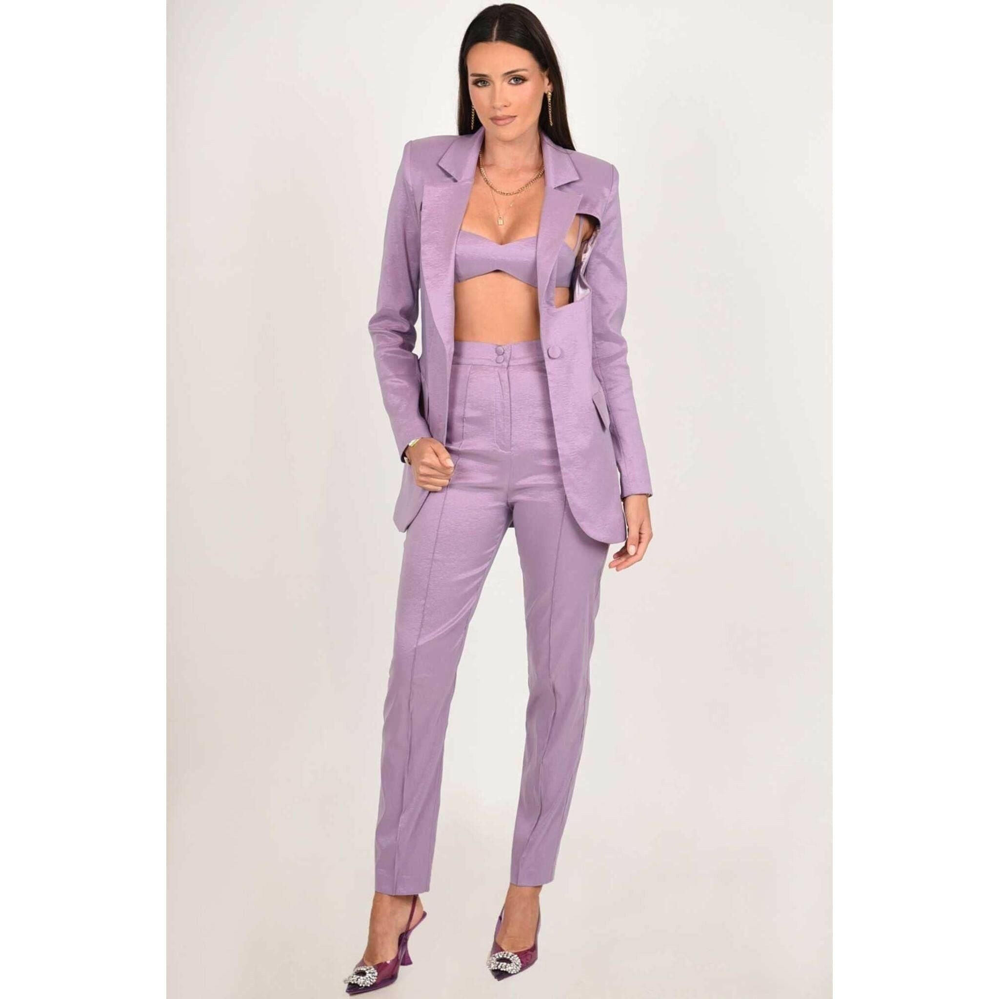 These high-waisted pants are the perfect addition to your wardrobe this season. They feature a zipper closure, and they come in a luxurious lilac color. Wear them with a simple T-shirt, or pair them with a blouse and heels for an elegant look.