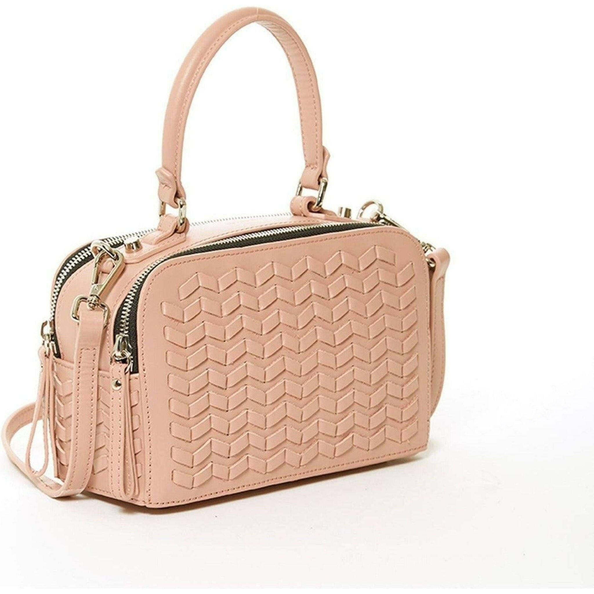 The boxy shape Kayla purse in pink is made from Italian leather and accented with a beautifully weaved leather in the front of the bag. This pink woven leather bag exudes style with its silver polished hardware, sure to turn heads this season. With the 2 large zipped compartments and 2 interior zipped pockets will surprise you by how much it can fit. This chic top handle designer bag comes with an adjustable crossbody shoulder strap especially for those times your hands are busy texting.