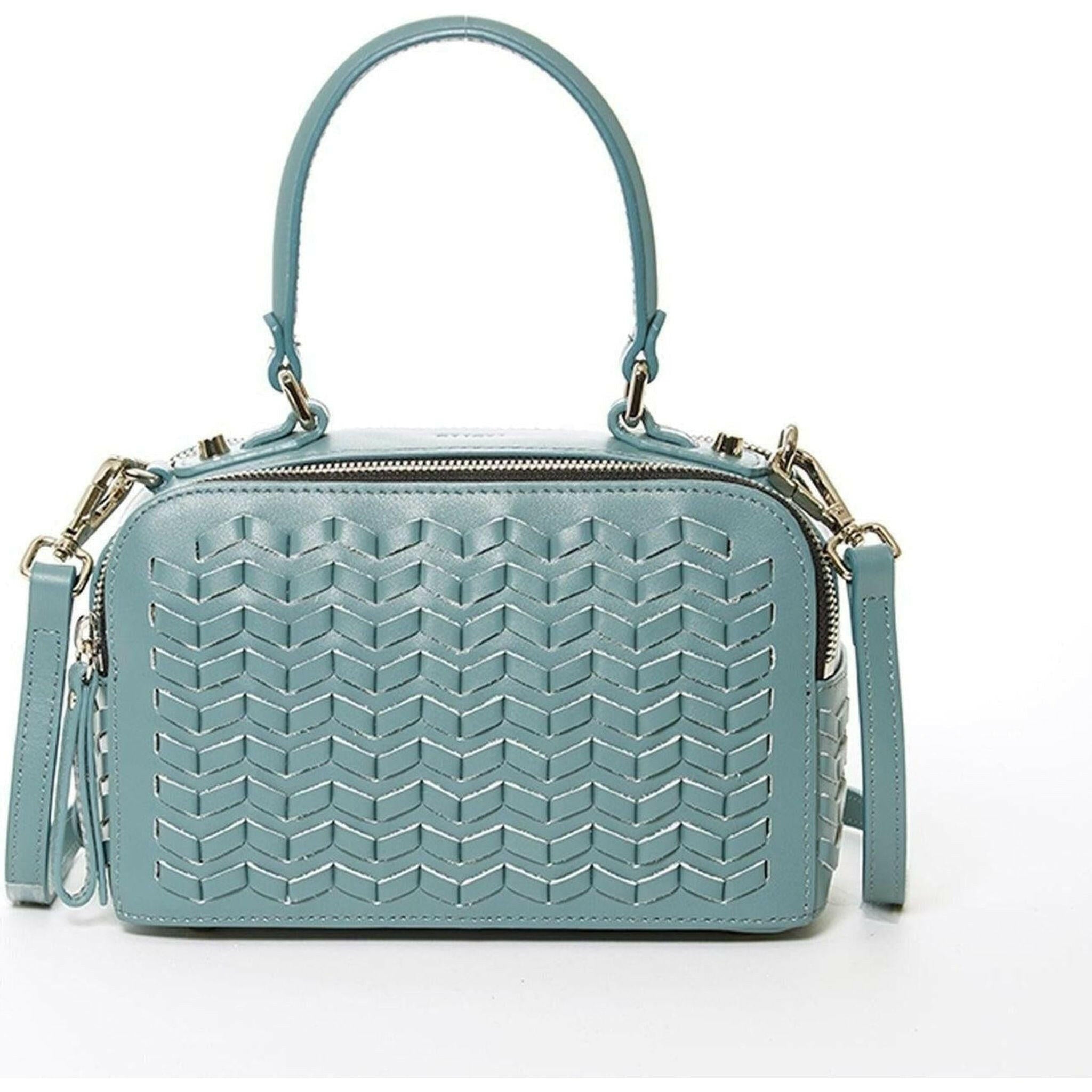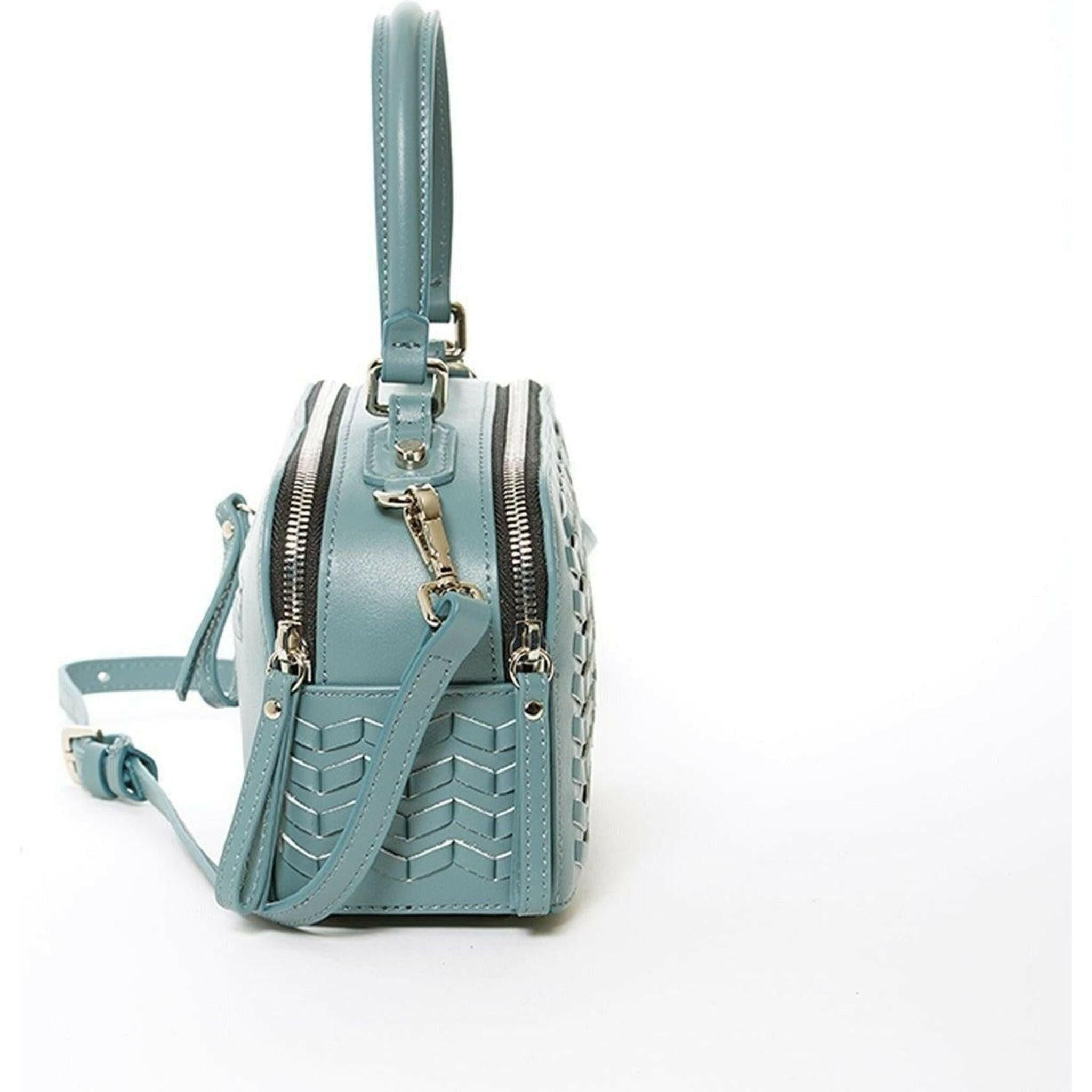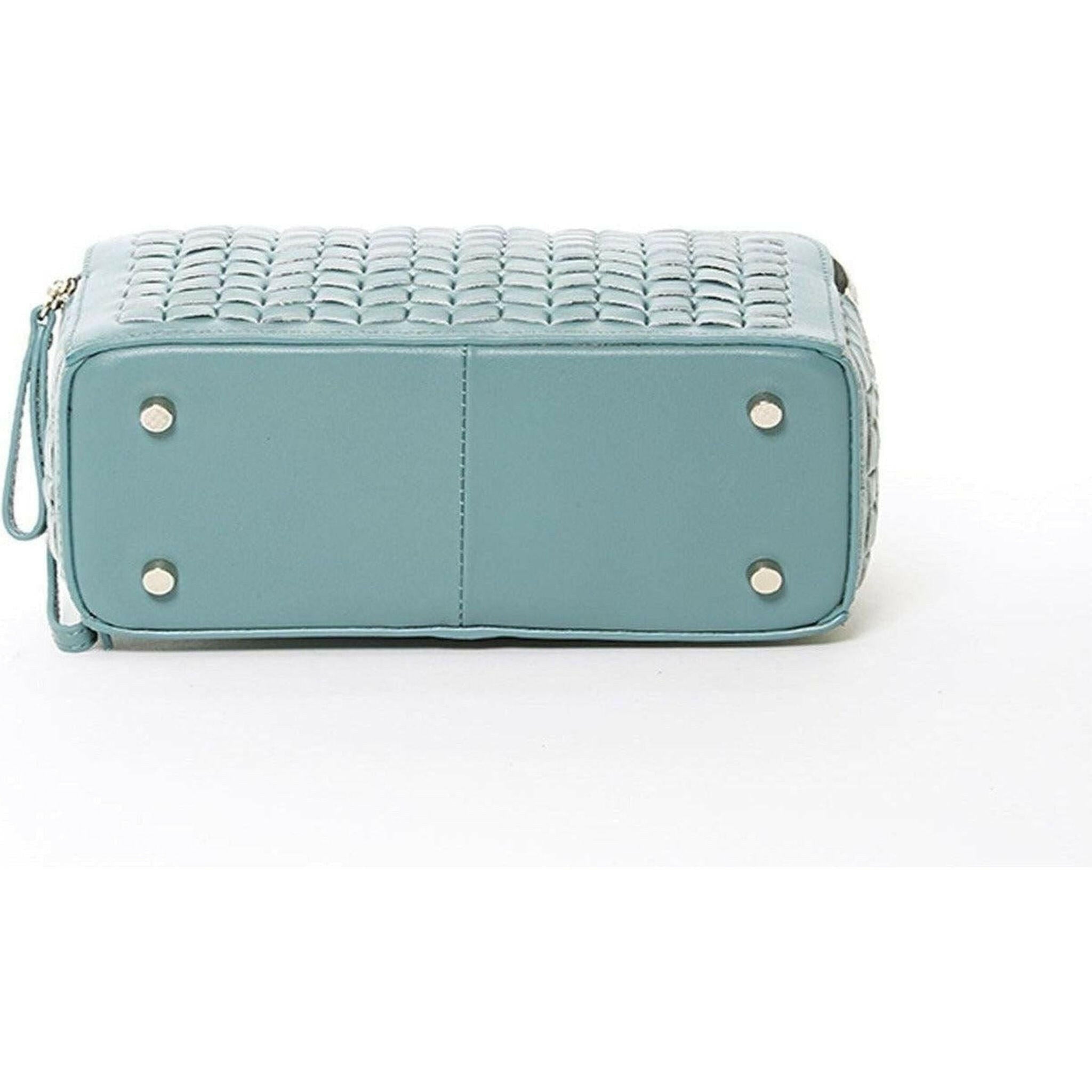 The Kayla boxy shape woven crossbody bag blue is made from Italian leather and accented with a beautifully weaved leather on the front. This season-defining wicker crossover purse features silver polished hardware for a unique and stylish look. With the 2 large zipped compartments and 2 interior zipped pockets will surprise you by how much it can fit. This cute top handle fashionable bag comes with an adjustable crossbody shoulder strap especially for those times your hands are busy texting.