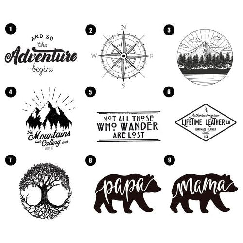 A classy and durable leather luggage tag, handcrafted with adjustable straps, heavy duty buckles, and a secured center slot for an address card. These luggage tags make a perfect accessory for suit cases, handbags, or totes. Personalize the front with your initials and select a fire branded design on the back. If you'd like, Lifetime Leather Co. can even brand your company logo on the back as well.