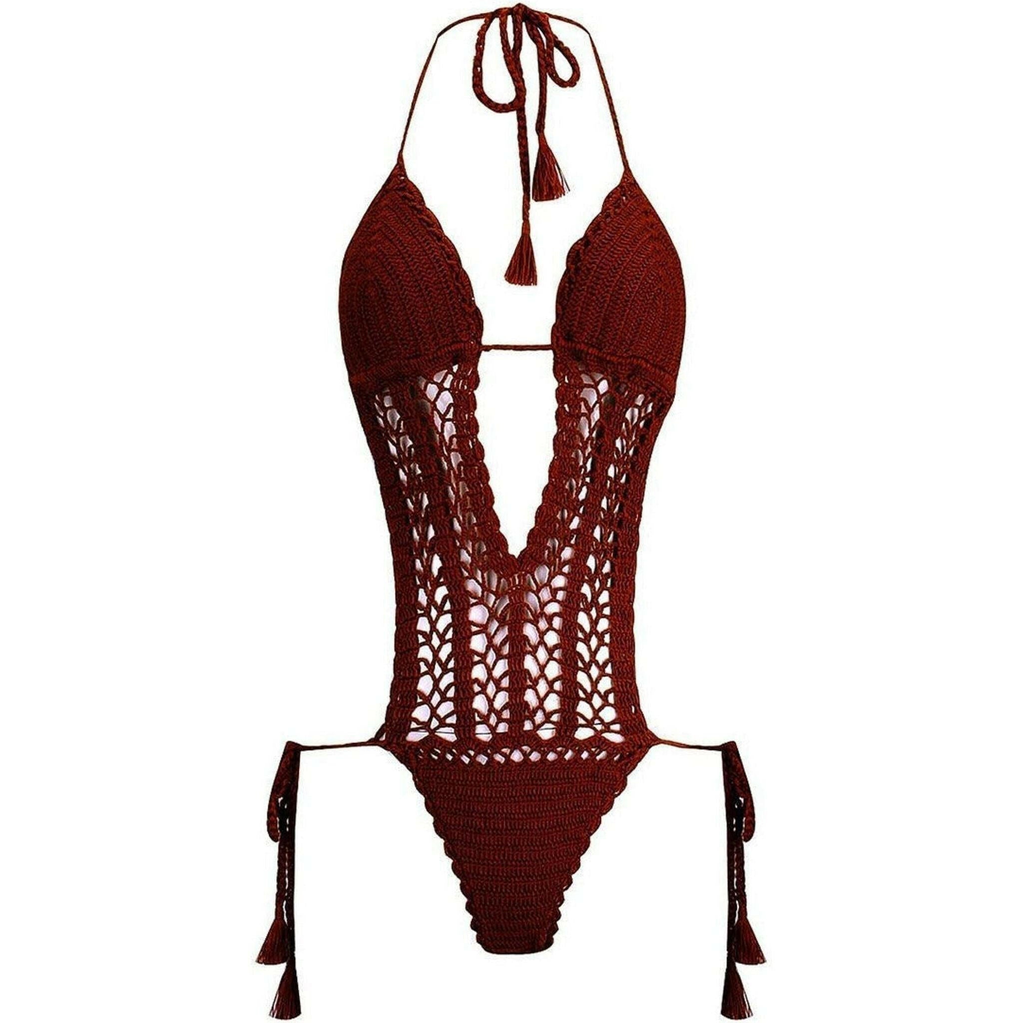 La Turquesa Hand-Crocheted Monokini Red has a gentle, feminine design that enhances the figure effectively, made from specialized high quality waterproof wool yarns, knitted from the hands of skilled artisans. The waistband can be adjusted to fit any body size.