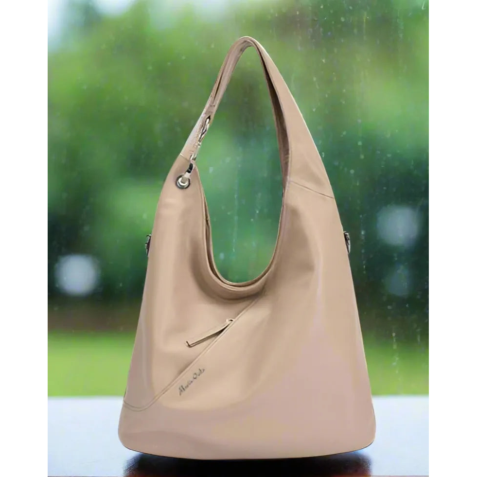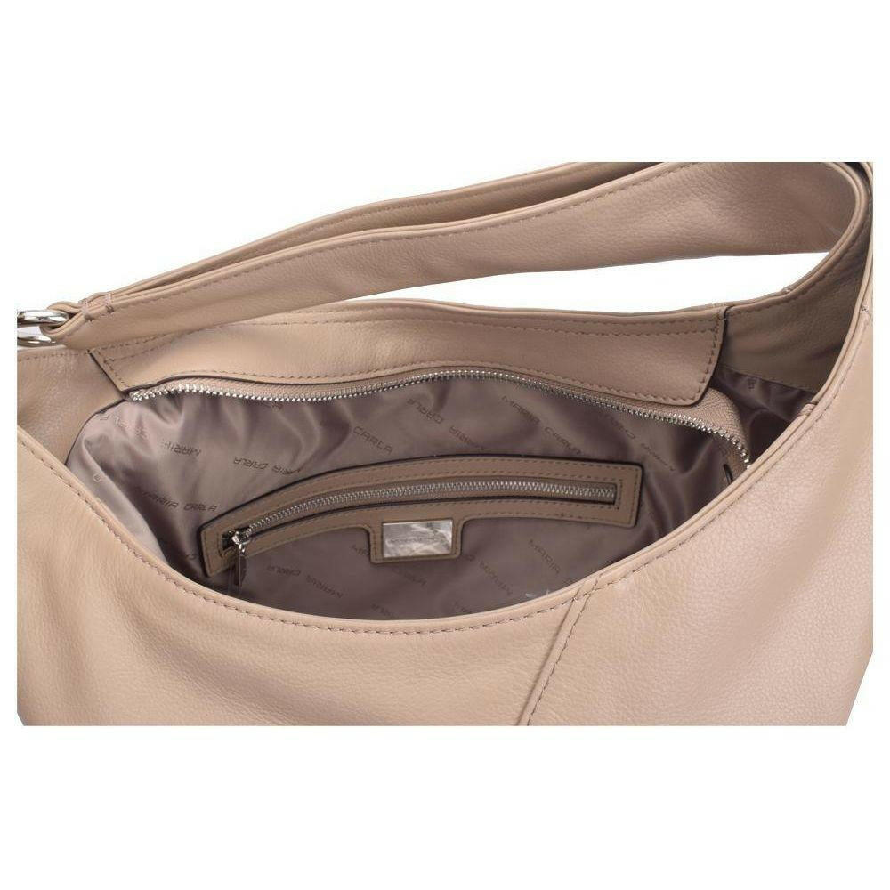 This Martina Leather Handbag by Maria Carla is made from cow leather with silver chain handle. Includes Snake pattern crossbody shoulder strap. Main compartment with zip closure. Interior has 2 slip pockets. 1 zip slip pocket. Dust bag. Exterior has front zip slip pocket. Silver metal detailing.