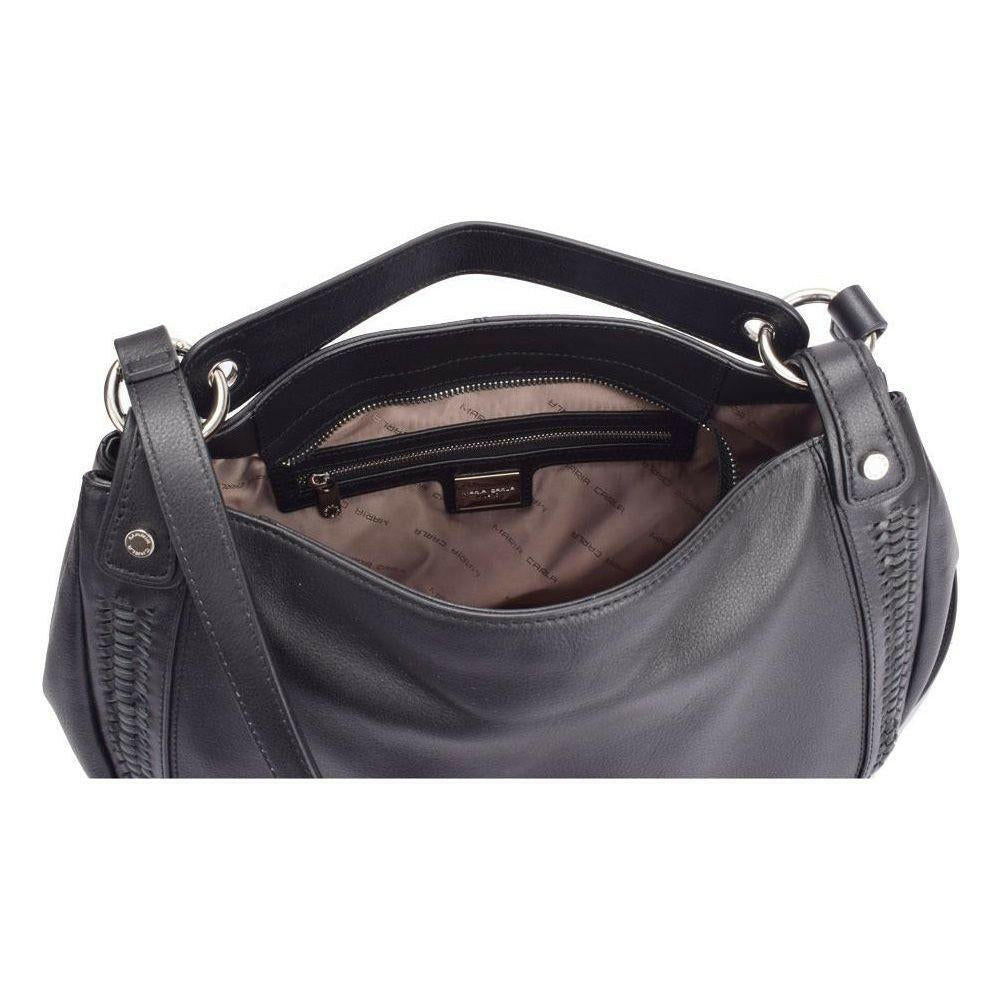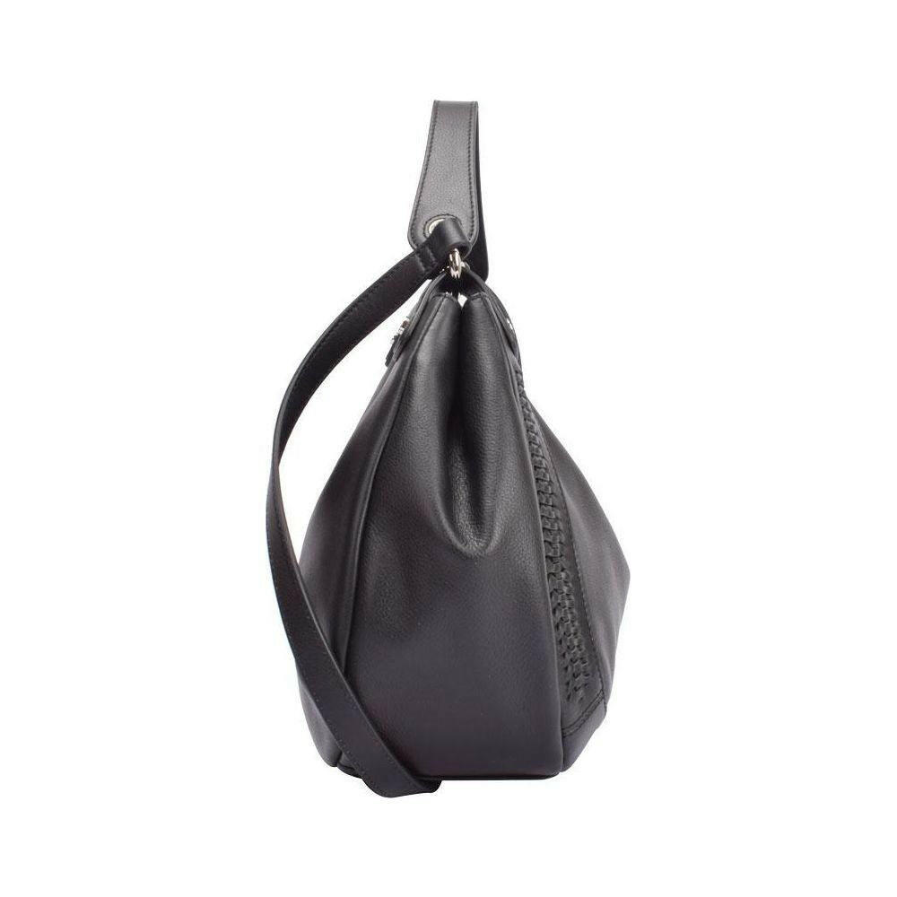 This Lidia Leather Handbag is made from smooth cow leather with handle. Attached cross body shoulder strap. Main compartment with zip closure. Silver metal detailing.