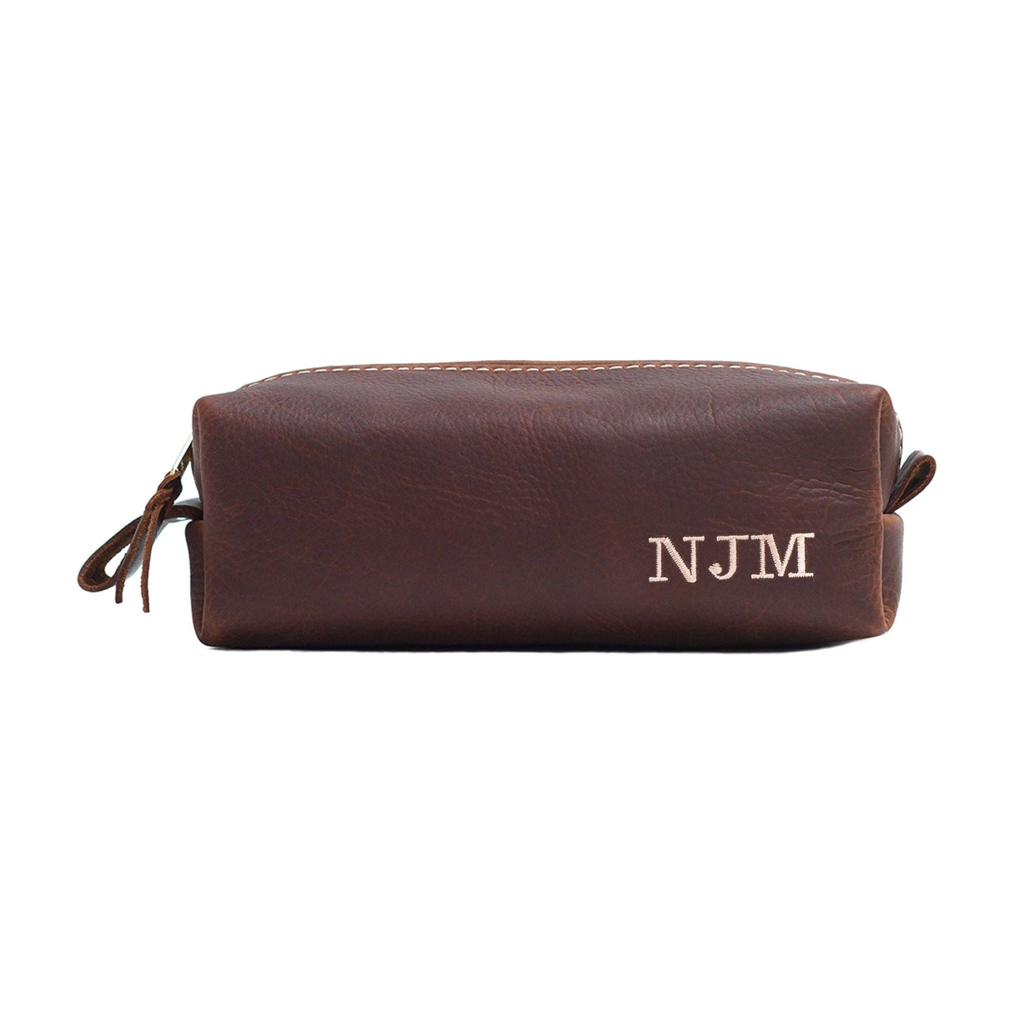 Each bag is carefully hand-cut and stitched using only top-grain, premium leather. The integrity of the leather is complemented by the interior black nylon lining, engineered to be durable and easy to clean. This is the last toiletry bag you will ever need to buy! Personalization is available with initials on the front or adding your own brand or logo.