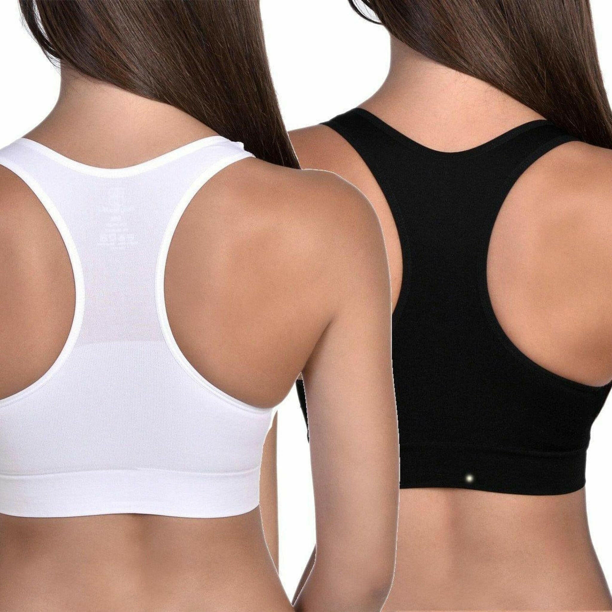 Our seamless double-layered "Most Comfortable Bra" with a racerback finish for the support when you are in an active mode. Molded pads that can be removed for extra support and wide shoulder straps that hold you better for utmost comfort. They are our best sellers & are favored by women. You'll love it! 1 White and 1 Black.