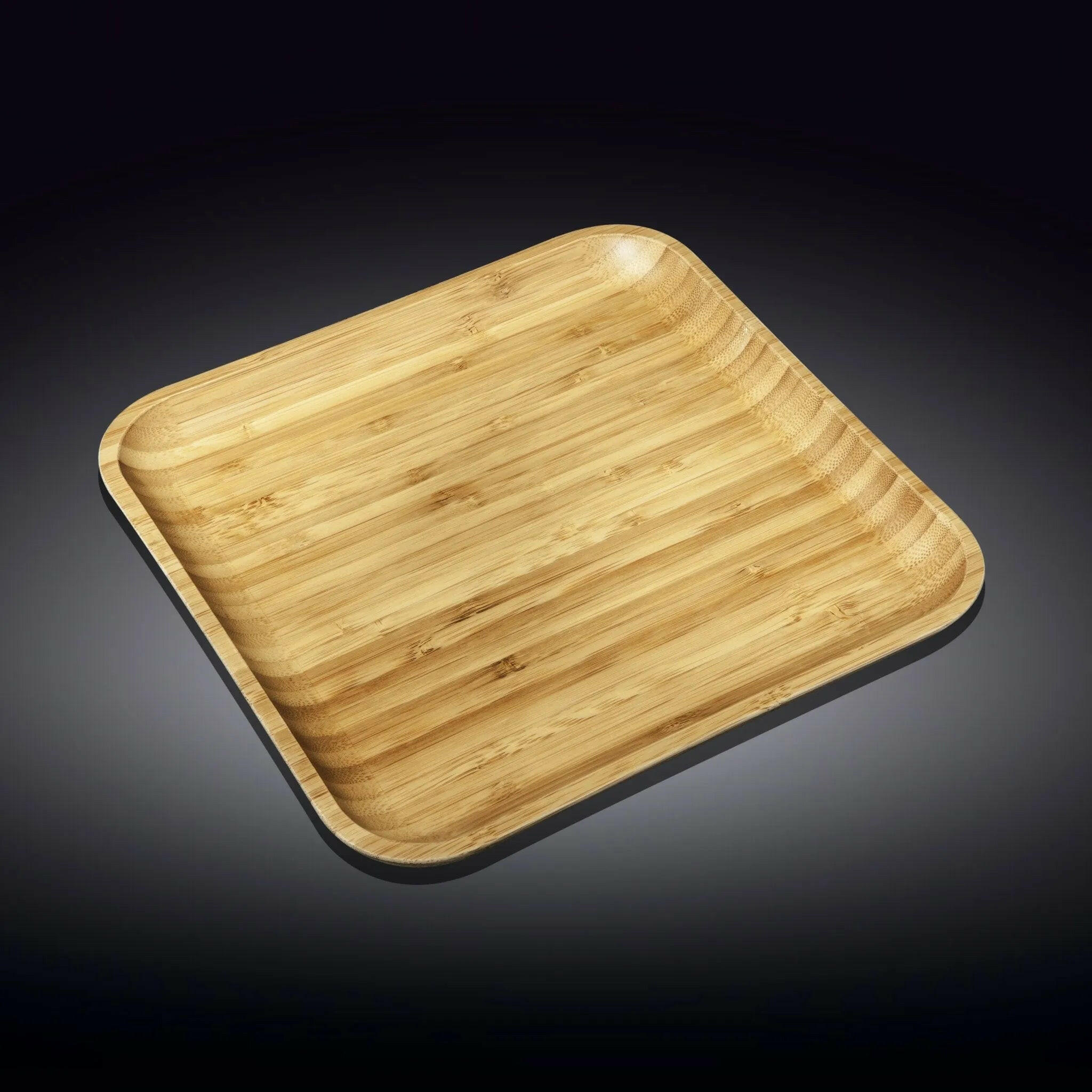 - Platter, 14" x 14" (35-1/2 cm x 35-1/2 cm), square, natural bamboo.