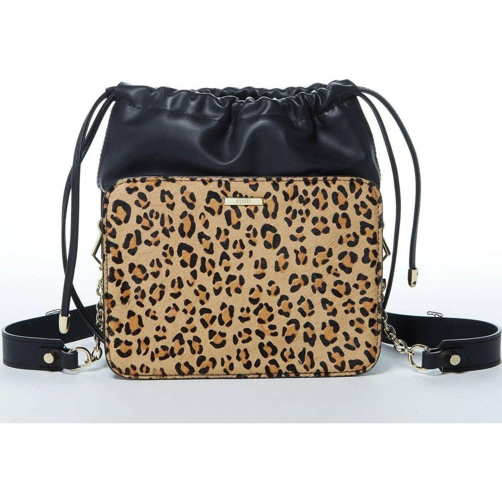 The one-of-a-kind Patricia is a practical leather leopard purse with a spacious interior and a stylish exterior. It features one zipper pocket and one zipper compartment in the middle of the bag to help you easily section out and organize your important belongings. The strap easily clips on and off with a secure hook. Pairs well with any outfit - dressy or casual! Simple drawstrings capped with gold hardware balance modern and bohemian trends to ground the structured bottom with a more relaxed
