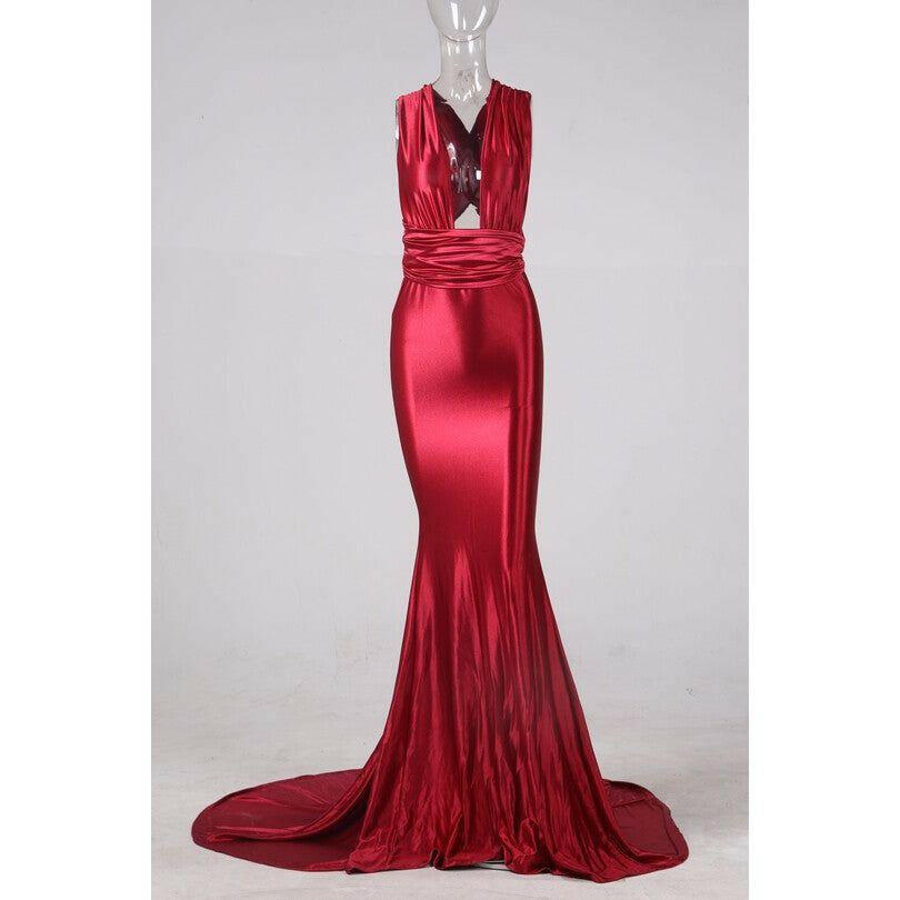 Turn heads in this luxuriously draped design. This Sexy Fitted Red Evening Gown is crafted with figure-hugging polyester satin. You will surely sparkle in this timeless evening gown.