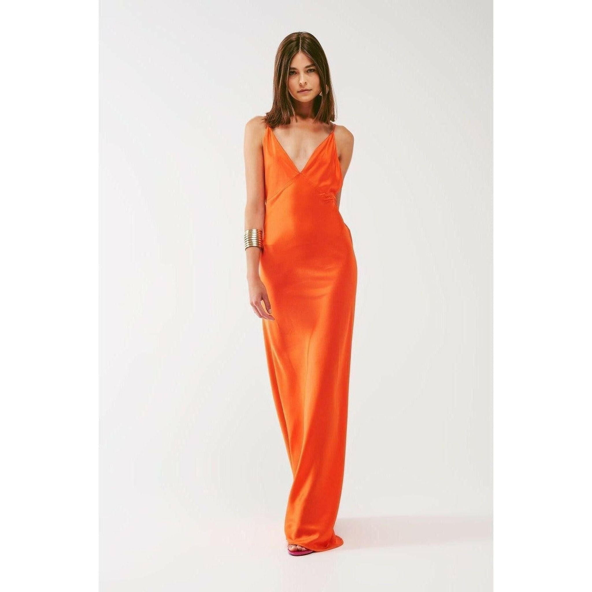 Satin Maxi Dress with Spaghetti Straps in Orange