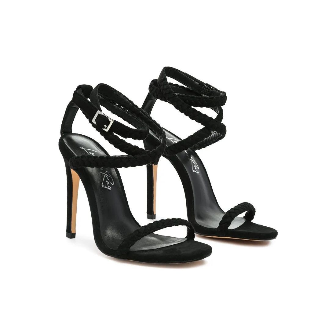 Put your best foot forward with these high-heeled faux suede sandals! The luxurious braided straps elegantly settle on your feet, making this the perfect pair for all your formal dates. Whether you're heading to a wedding, prom, or fancy dinner party, these stilettos will keep you looking stylish and feeling confident.