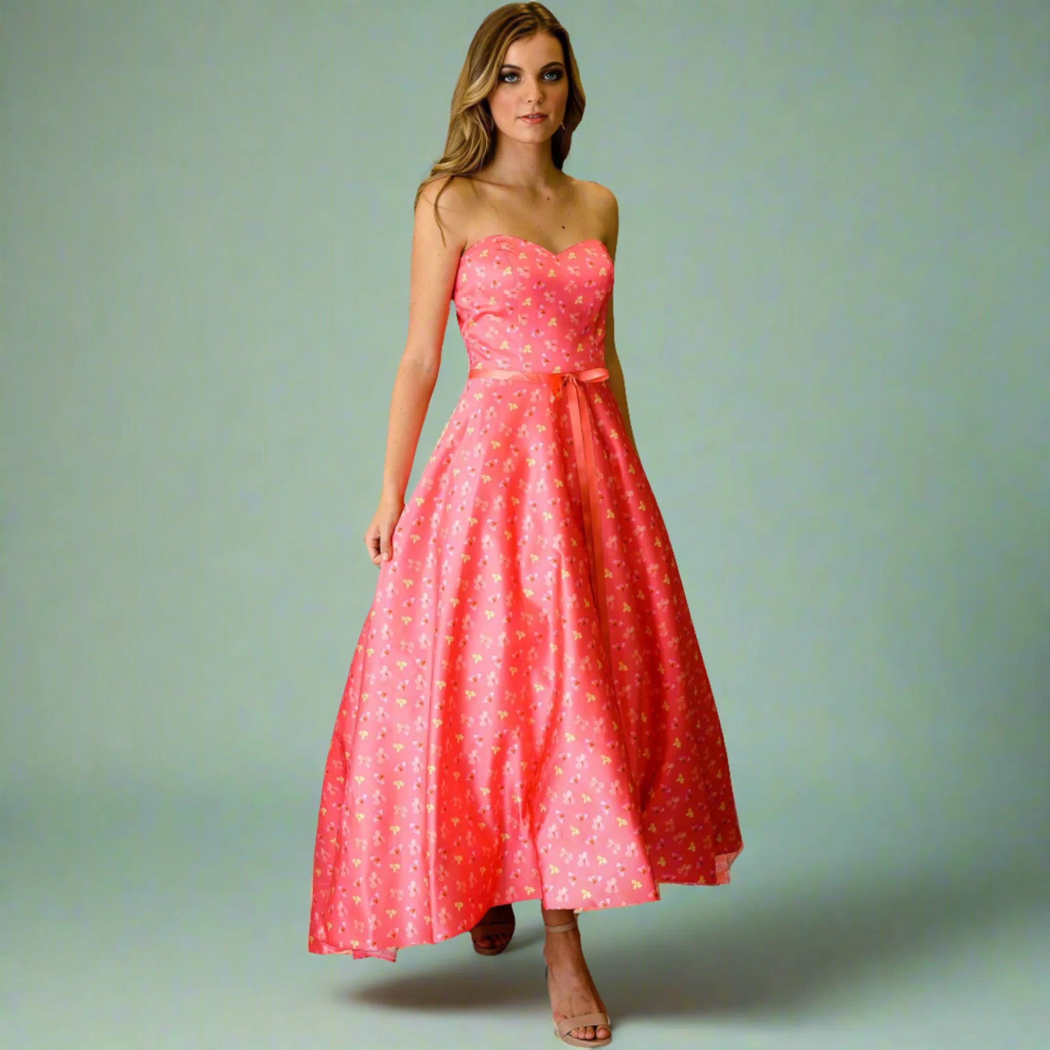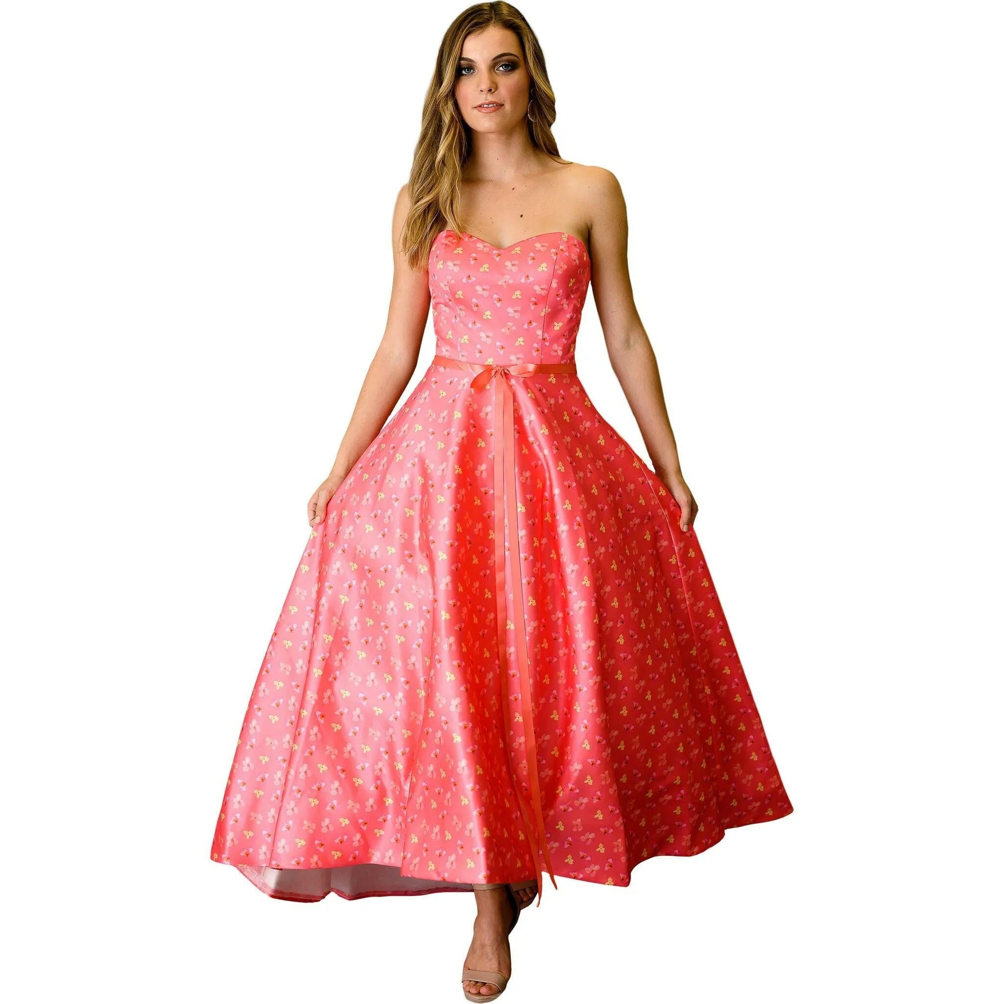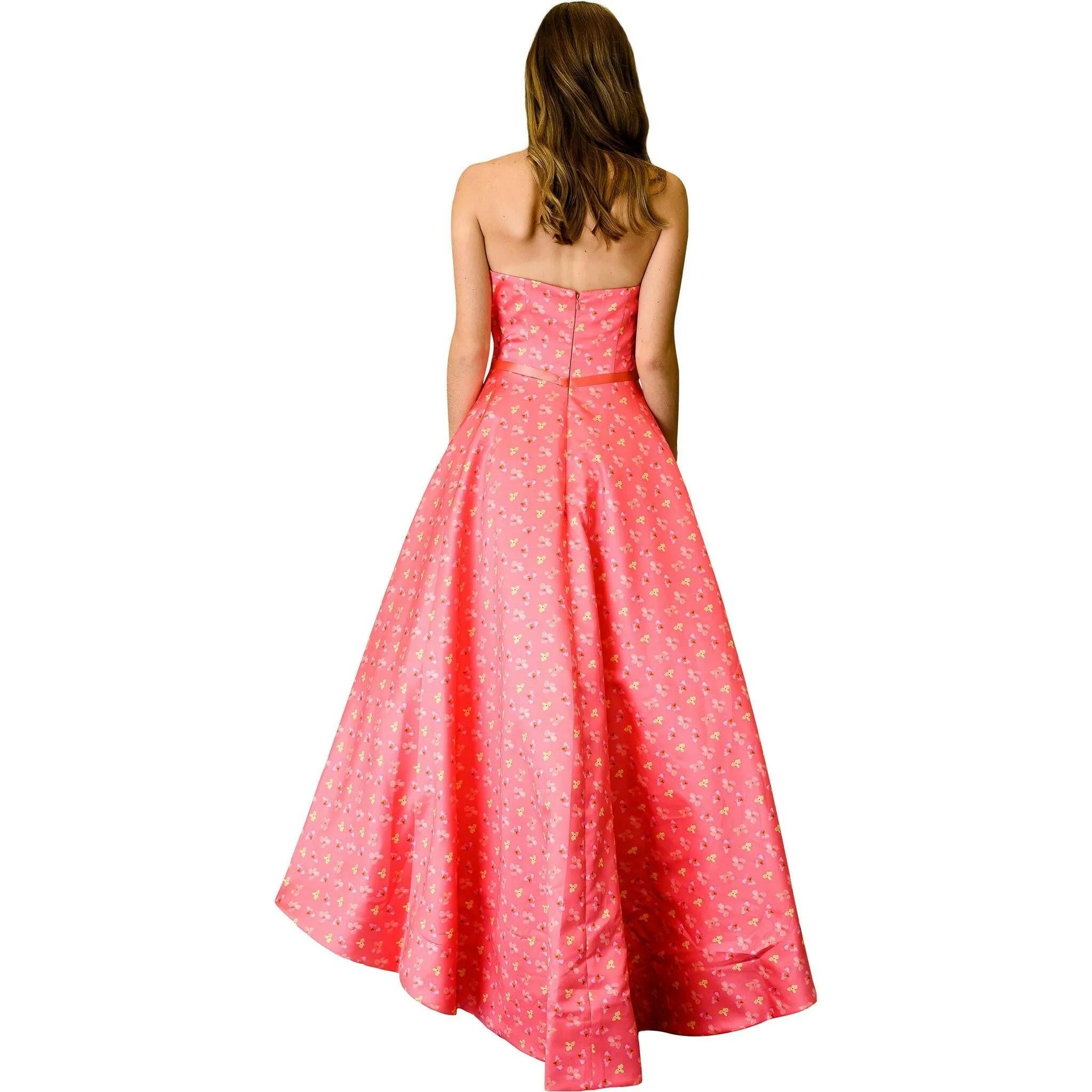 Embrace the beauty of spring and make a statement in the "Spring Sweep" shoulderless floral dress. Its delicate floral print, elegant silhouette, shoulderless design and full skirt create a sophisticated and feminine look, while the sweeping train adds a touch of drama to the overall design. Perfect for weddings, garden parties, or any other formal events, this dress is sure to make you feel confident and stylish.
