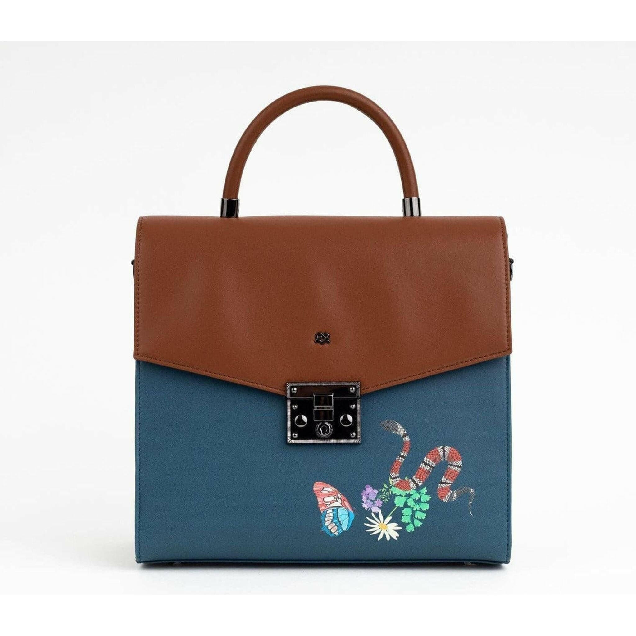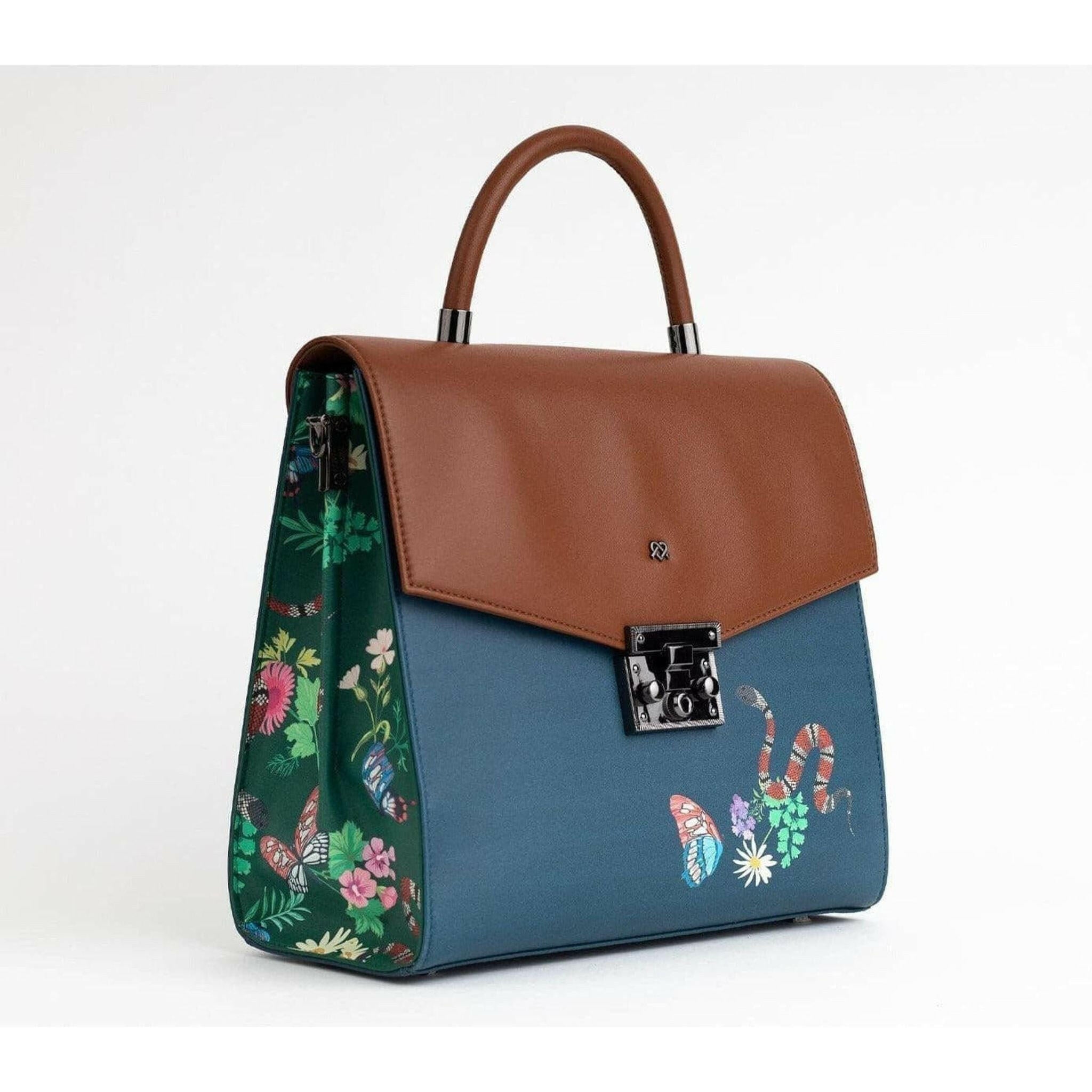 SIMONE - Blue Print Vegan Leather Handbag