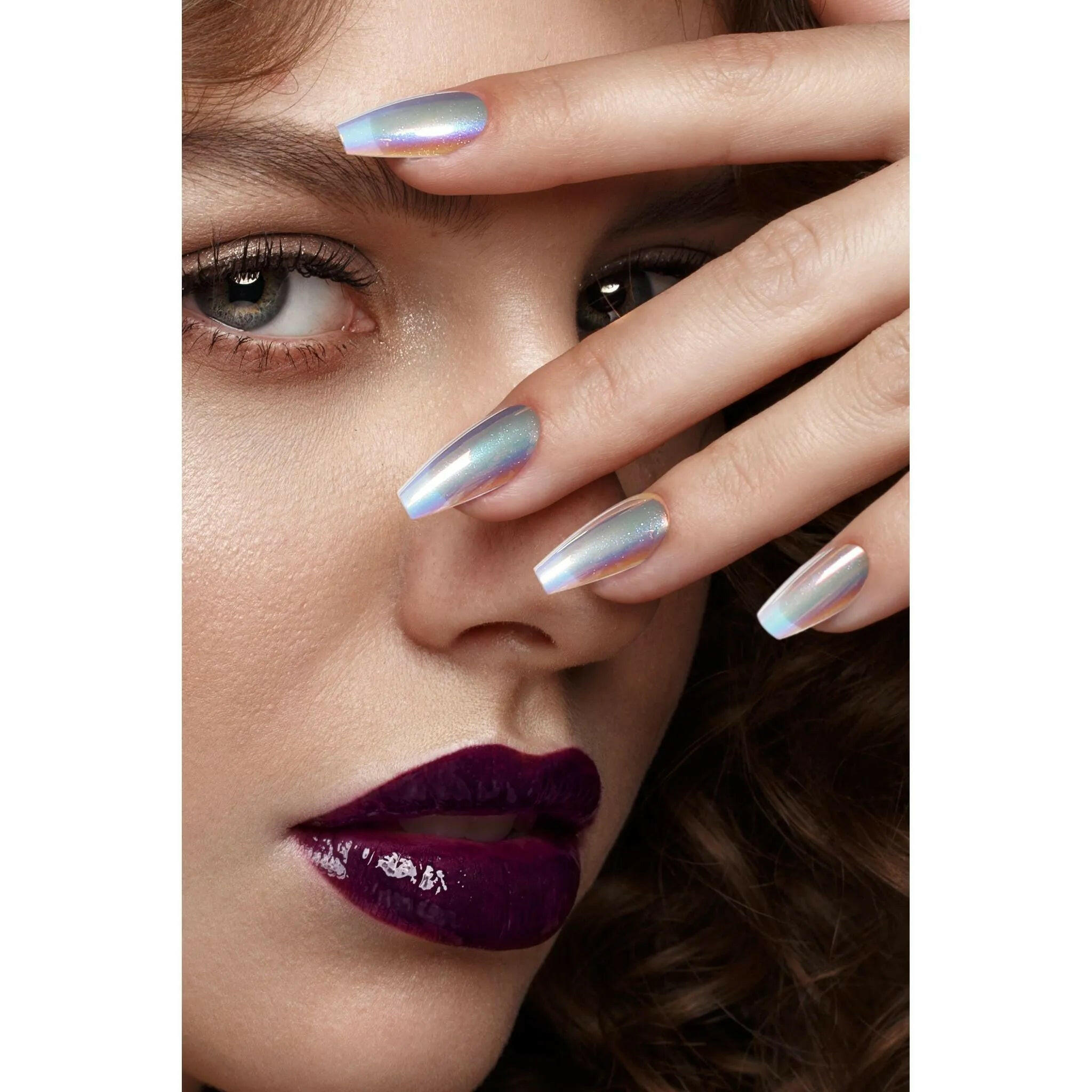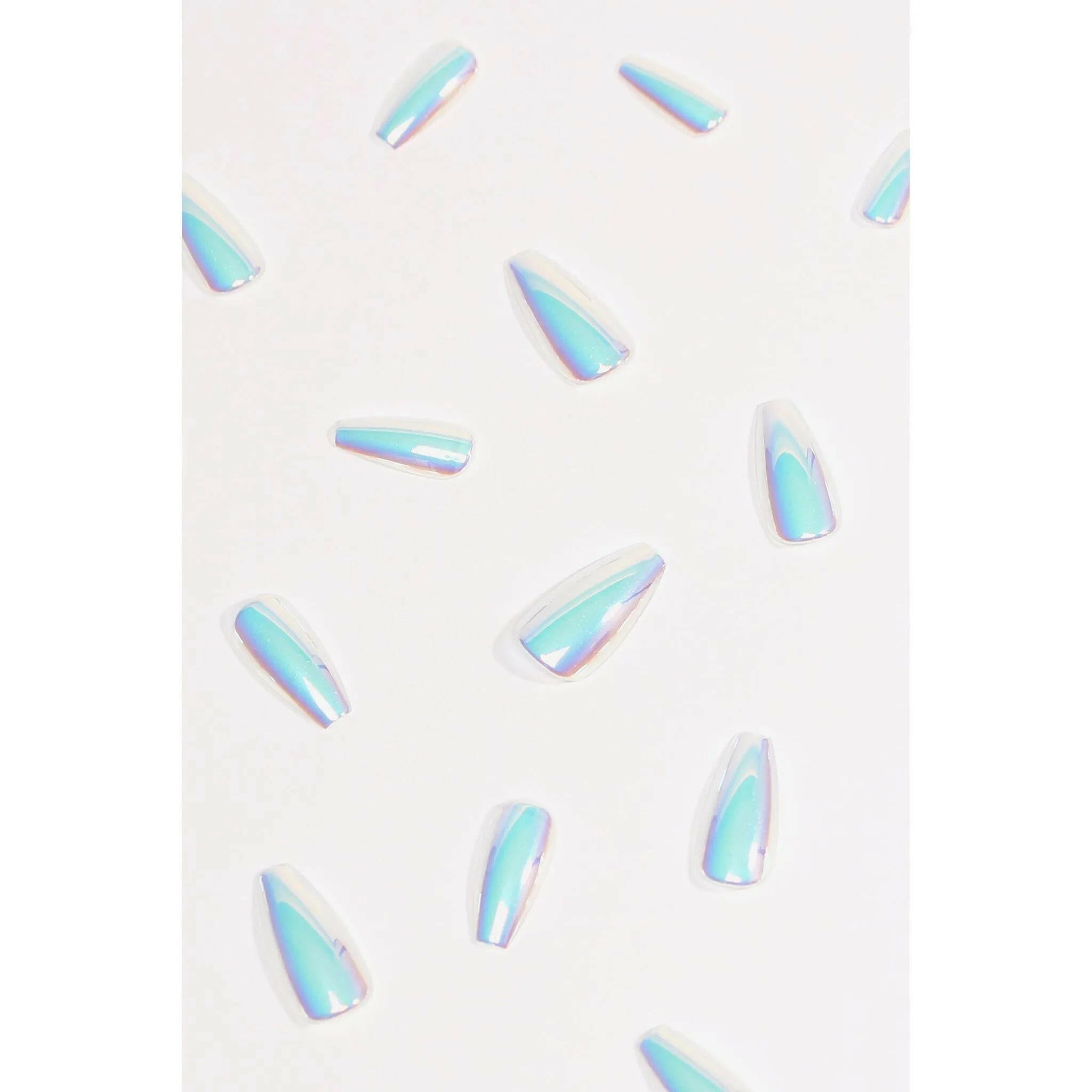 Immerse yourself in the effervescence of Soda Pop press-on nails, shimmering with a chrome finish that boasts a refreshing translucence. This design embodies the lively spirit of a carbonated delight, capturing the bubbly essence of your favorite fizzy treat in a manicure.