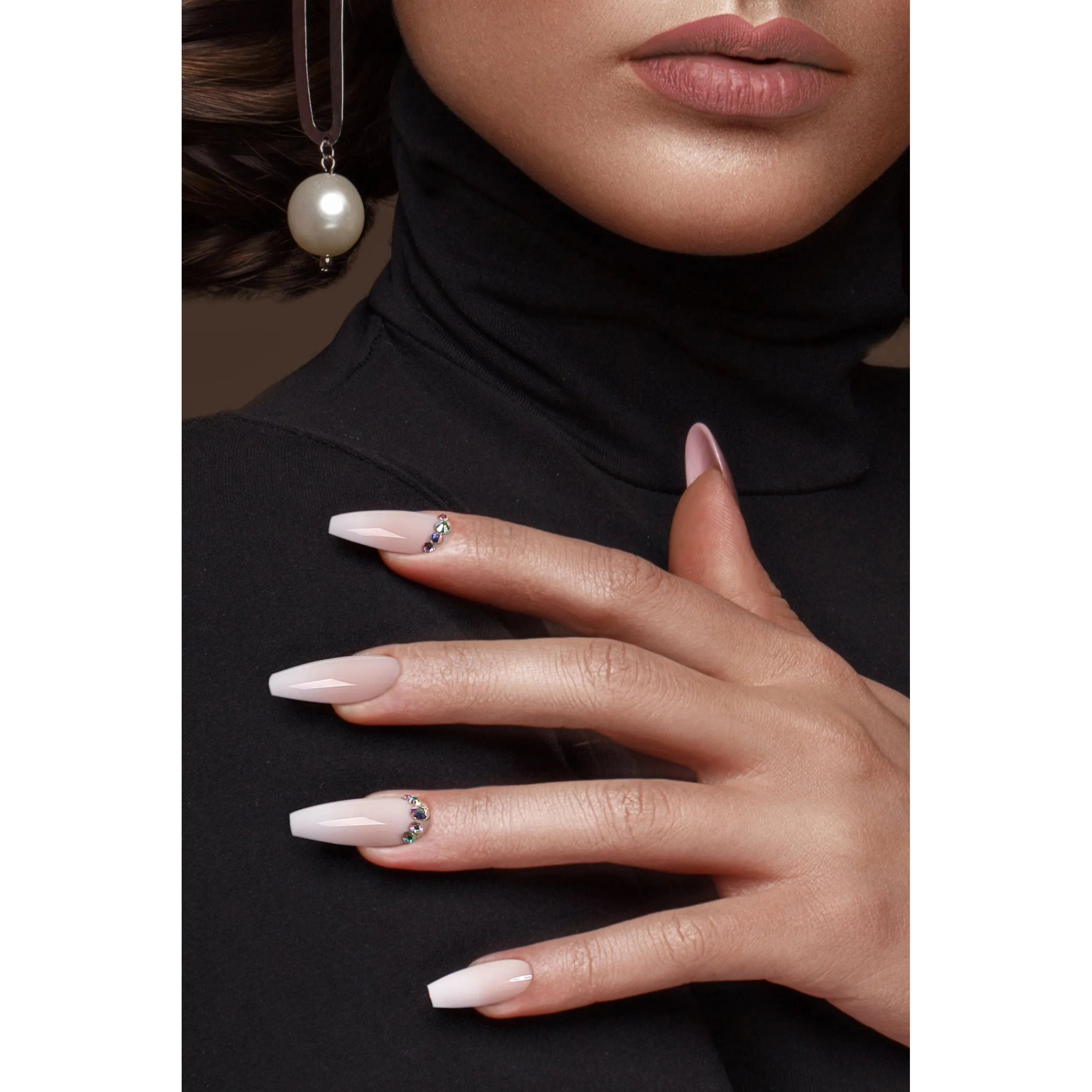 Strawberry Mousse press-on nails serve up a sweet treat for your hands with their creamy hue, crowned at the tips with sparkling rhinestones. The playful yet elegant arrangement adds just the right amount of whimsy to a classic, polished look. Bonmuz brings you premium press-on nails, combining high-quality elegance with the assurance of non-damaging wear. This collection is dedicated to providing an exquisite, durable solution for an at-home manicure that stands the test of time and lifestyle, making it effortless to elevate your look. A NOTE FROM BONMUZ: When you use liquid glue, apply enough glue to avoid air pockets, secure Bon Art nail properly, and extend wear time. The more glue applied, the longer the nails will stay on. Immediately use a cloth or nail brush to remove excess glue if over gluing occurs. Do not use if nail is inflamed or infected. REMOVAL: Bon Art Nails will typically last for 7-10 days and will naturally release when glue bond weakens. Should you wish to remove prior to this, gently push under the Bon Art Nail to lift sides. Soaking in warm soapy water may be helpful to avoid damage and best preserve your set.