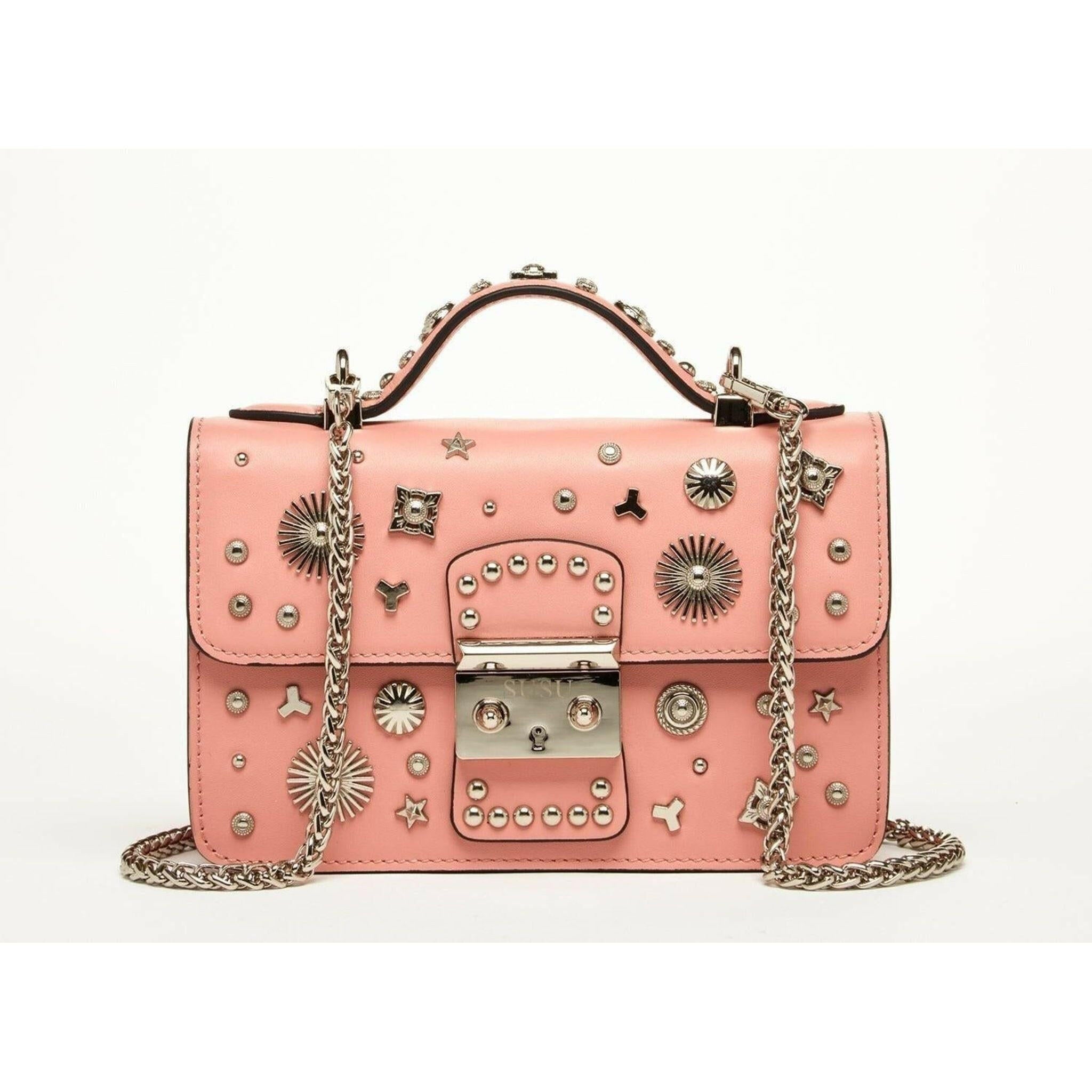 This beautiful Hollywood studded crossbody bag is made from premium leather and features a delicate pale pink color that is accented by silver studs with adjustable silver chain strap. The interior is lined with cotton fabric and has multiple pockets to keep you organized. It is a must-have for any fashion-conscious woman looking for a versatile and stylish accessory. It's perfect for adding a pop of color to any outfit, whether you're running errands or going out on a date.