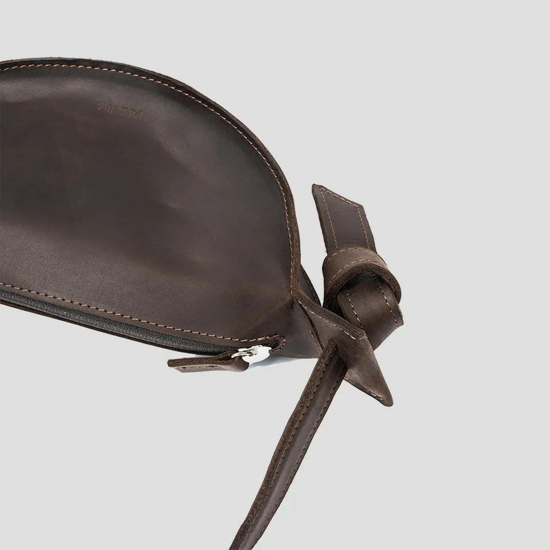Dark Brown Leather shoulder/hand bag with a stylish half-moon shape. This bag embodies casual elegance, making it a refined companion for daily use, with versatile styling options thanks to its minimal and neat look. The adjustable strap provides versatile carrying options, ensuring a comfortable fit whether worn on a shoulder or in hand depending on your look and style preferences. Crafted from durable and thick leather it’s designed to last while maintaining its understated charm.