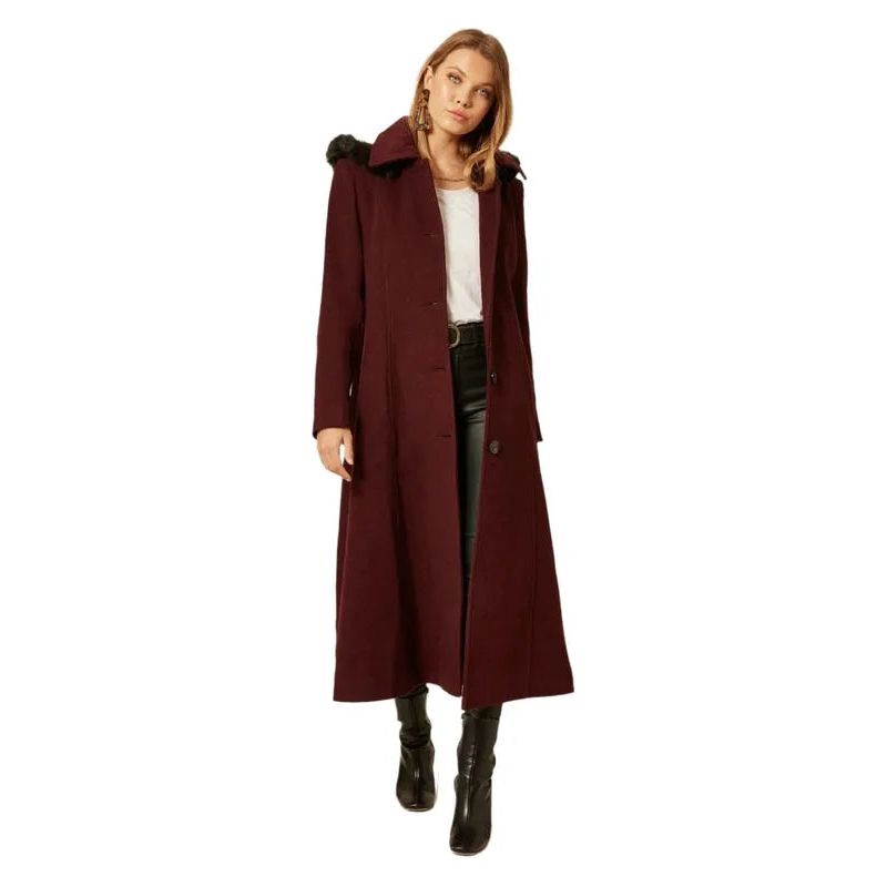 Step out in style and warmth with this playful Wool Blend Faux Fur Trim Hooded Long Coat! Featuring a Single Breasted Fastening, 2 side pockets, and a Detachable Hood with Faux Fur Trim, this coat is both quirky and practical.