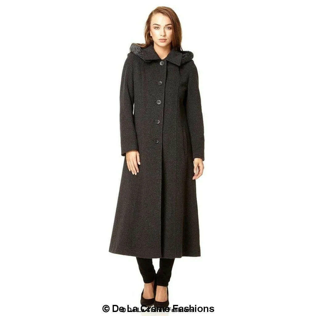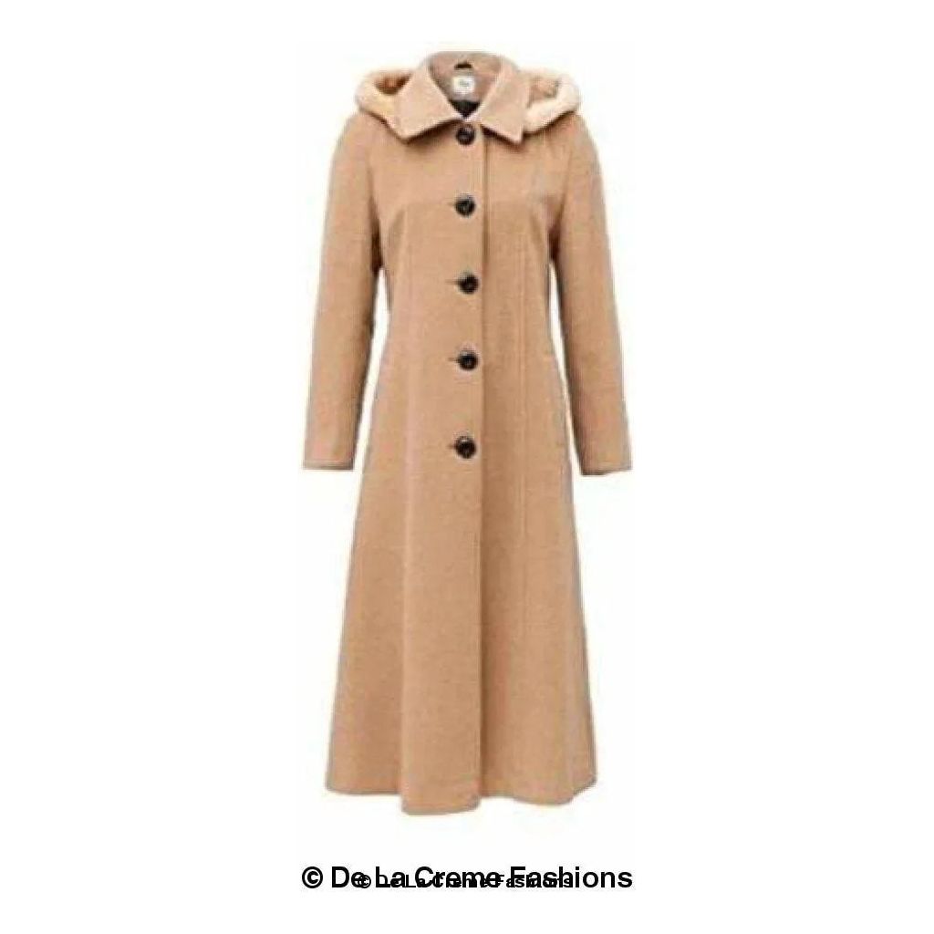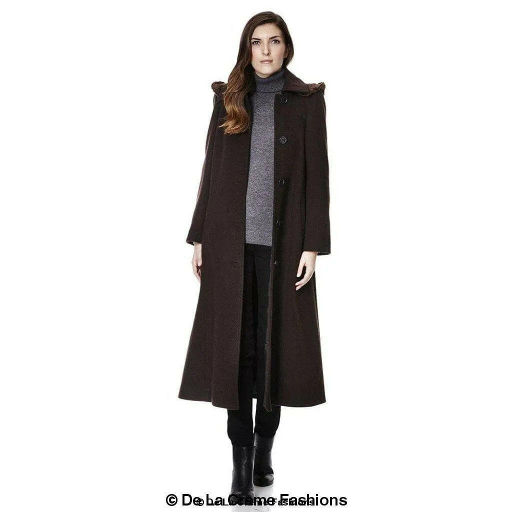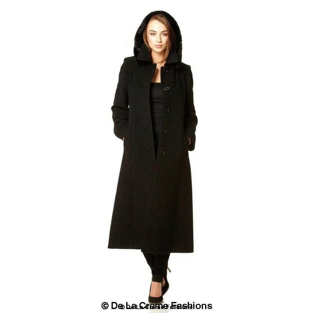 Wool Blend Faux Fur Trim Hooded Long Coat